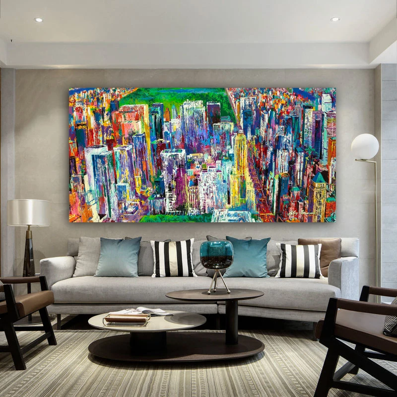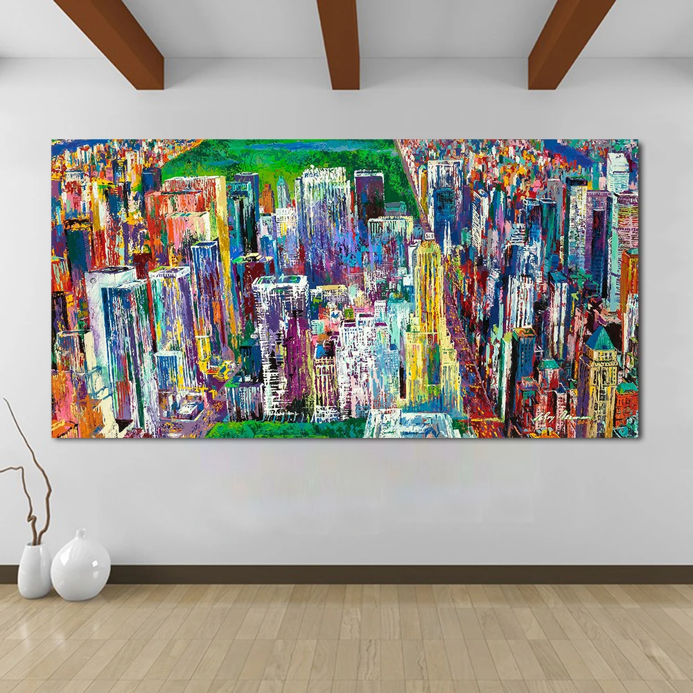 Картина маслом WANGART, большой размер, абстрактный город, панорамная Настенная картина Манхэттена, синяя картина для печати, Настенная картина без рамки