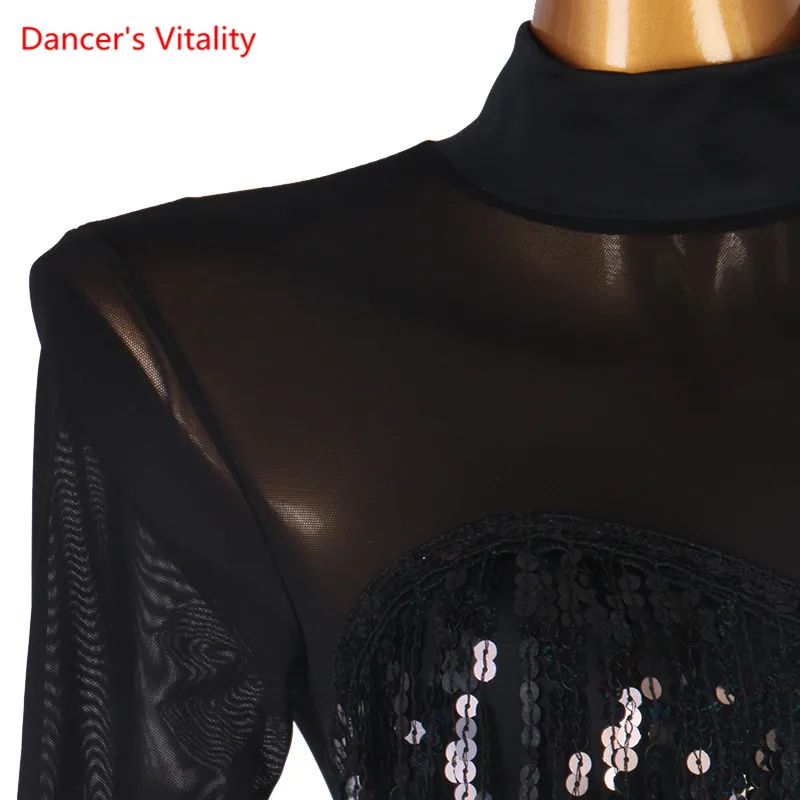 Топ женский для латиноамериканских танцев, элегантный боди с длинны...