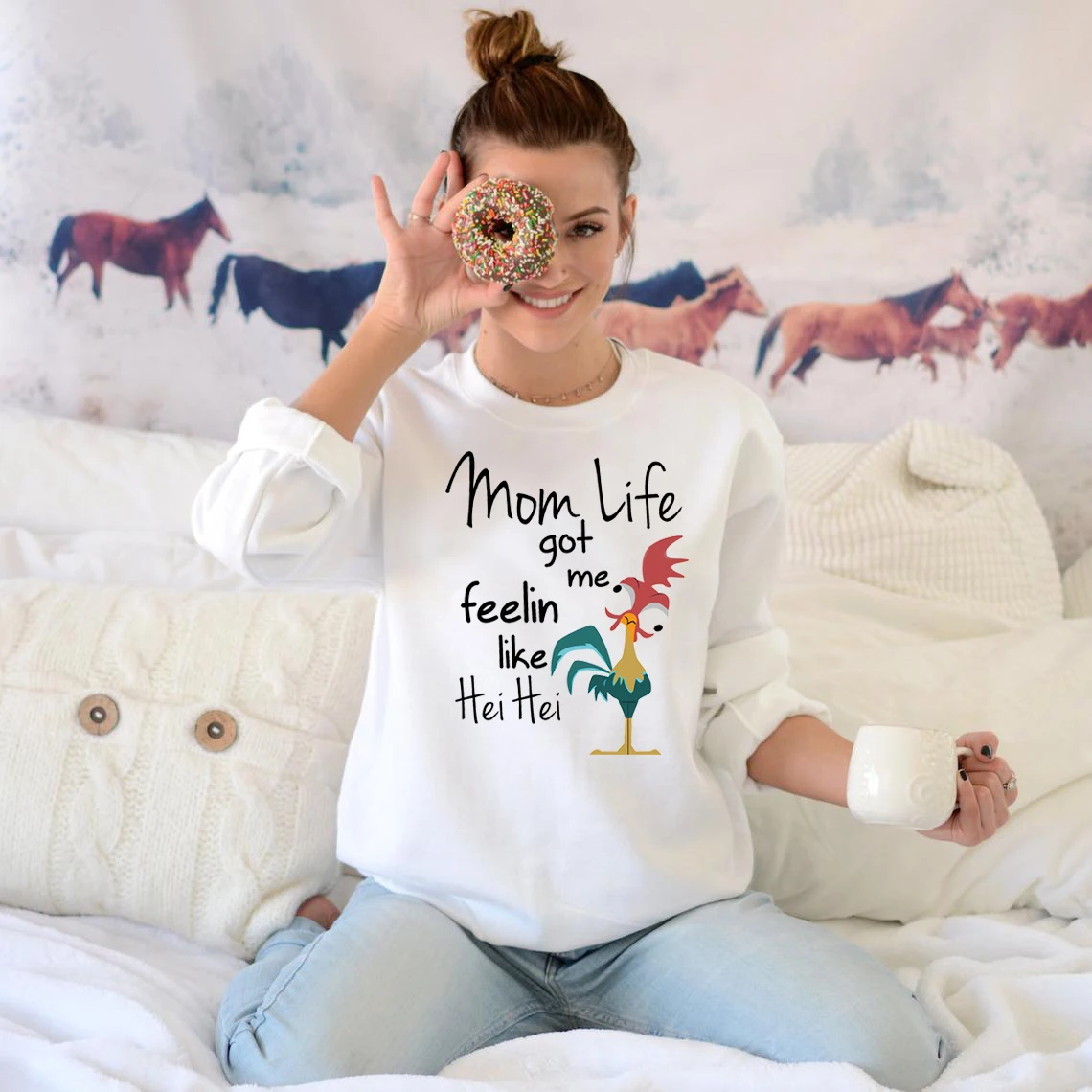 Женский свитшот с графическим принтом Hei, Пуловеры с круглым вырезом и мультяшным принтом для мамы, жизнь, мне нравится, Hei