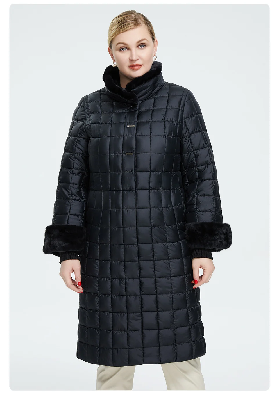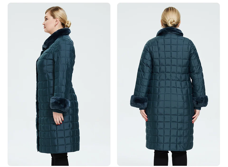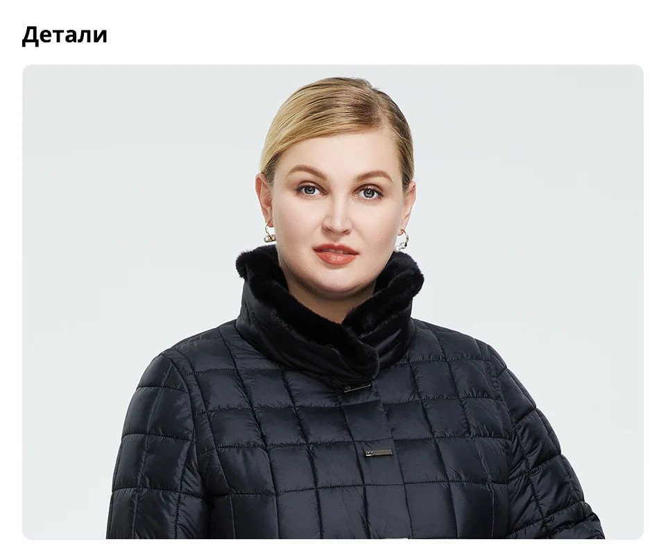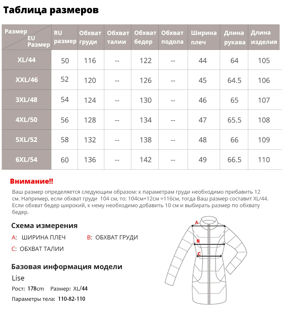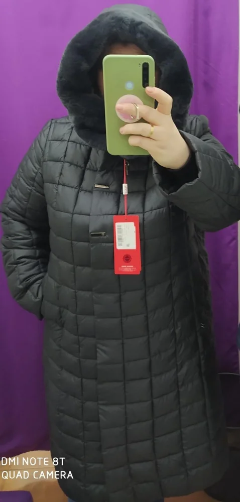 Пальто заказали по совету продавца 9XL на параметры: обхват груди 96 см, обхват бедер 106, рост 168. Размер хорошо подошел. Пальто легкое и теплое. Были длинноваты рукава, но это поправимо. На рост больше нашего можно смело брать: рукава коротки не будут. Капюшон удобный, оторочен мехом кролика, приятным на ощупь. Ткань водоотталкивающая, не шуршит, мягкая, цвет приятный. Карманы по бокам, на замочках. Кнопочки работают отлично. Пришел заказ быстро. Девушки размера +, магазин для вас, ведь в магазинах сложно найти большой размер, да еще чтобы хороший фасон и отличное качество! В подарок купон на след.покупку. Обязательно вернемся в этот магазин снова!