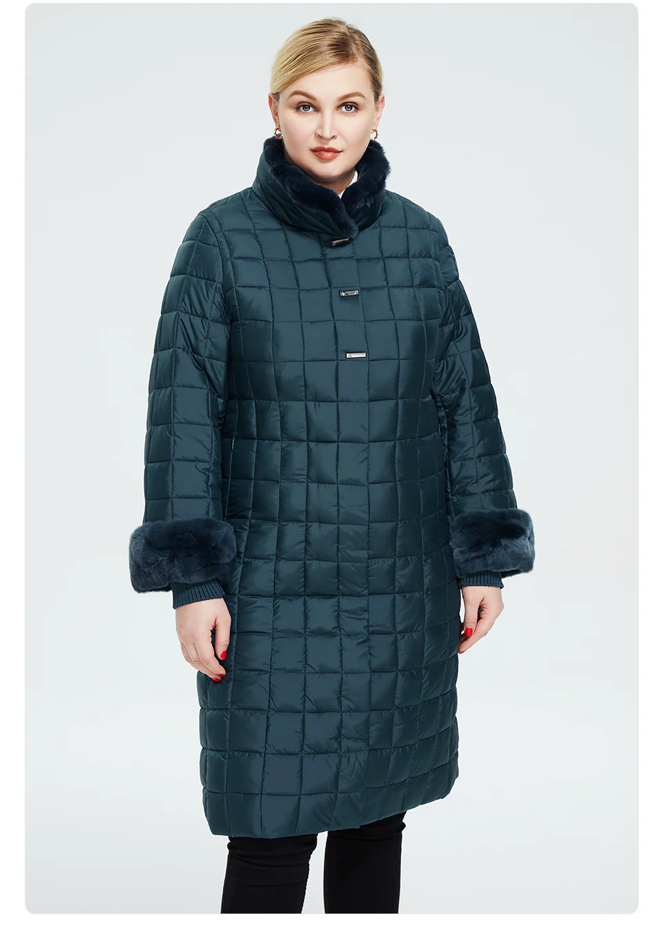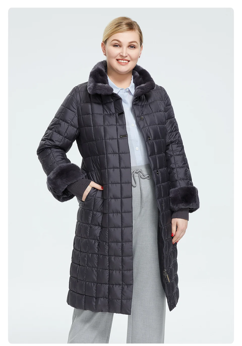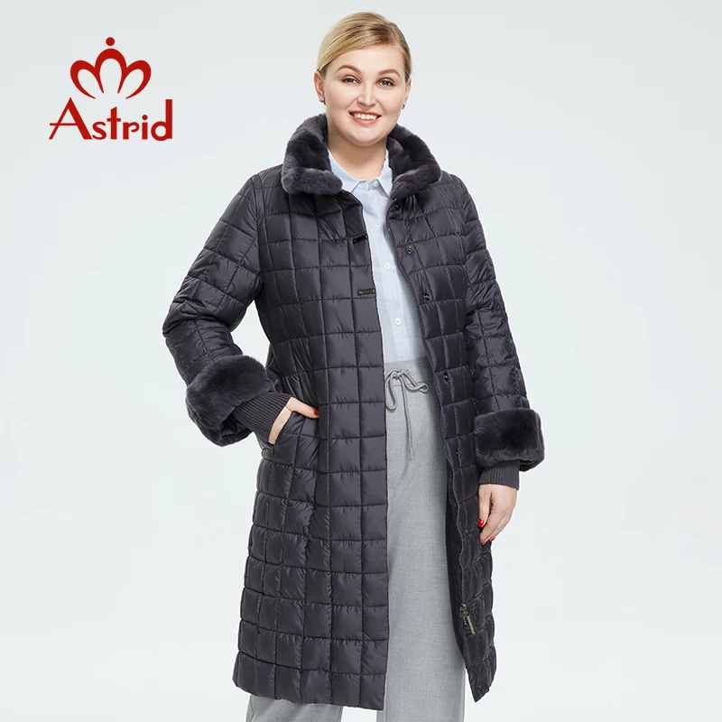 Astrid 2021 новое зимнее женское пальто Женская длинная теплая парка клетчатая куртка с капюшоном из кроличьего меха большие размеры женская одежда FR-2040