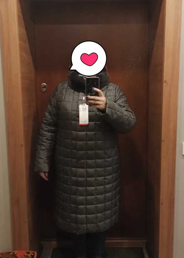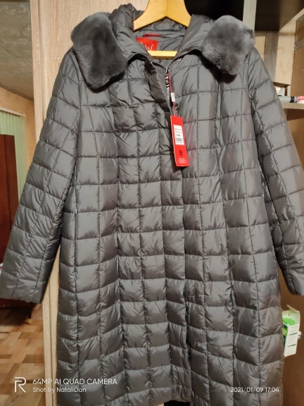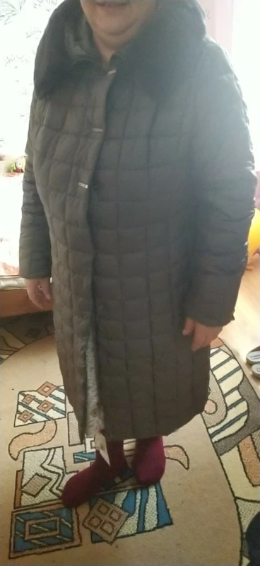 Первый мой заказ в этом магазине. Долго выбирала модель, читала отзывы, но заказать не решалась, боялась не угадать с размером. Но всё таки 13. 11. заказала ХХL на свою ОГ 102 см. Доставка была из России, 30го привёз курьер в удобное мне время. Пальто мне подошло, можно носить с тёплой кофтой. Отличная фурнитура, мягкий воротник (его можно снять) с густой шерсткой, капюшон глубокий. Со скидками продавца и Али оно мне обошлось в 5140 рублей. В подарок прислали платочек и купон на него 3$. Только цвет светлее чем на картинке продавца. Моя камера не смогла передать этот цвет. Теперь осталось надеть и пройтись по улице. У на в Челябинске сегодня около - 20 градусов.
