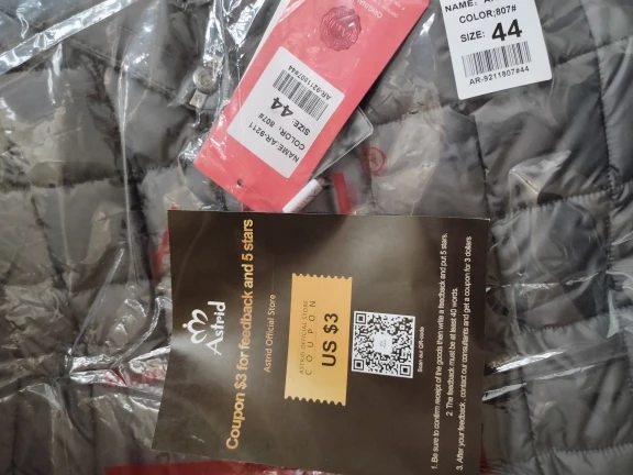 сегодня получила посылку. первый раз заказывала в astrid. честно говоря волновалась-без примерки заказывать пальто- ну непривычно и страшновато. ну так вот. полный восторг. не ожидала.качество супер. аккуратно.ровно.красиво. фурнитура отличная. пальто классное- лёгкое, красивое. размер по размерной сетке подошёл идеально.меряла на лёгкий свитер. если нужно думаю можно и потолще пододеть что то. с продавцом не общалась, но спасибо ему за заказ. отправлено сразу же. упаковано отлично.пять звезд. всем рекомендую! спасибо за купон -скидку 3$