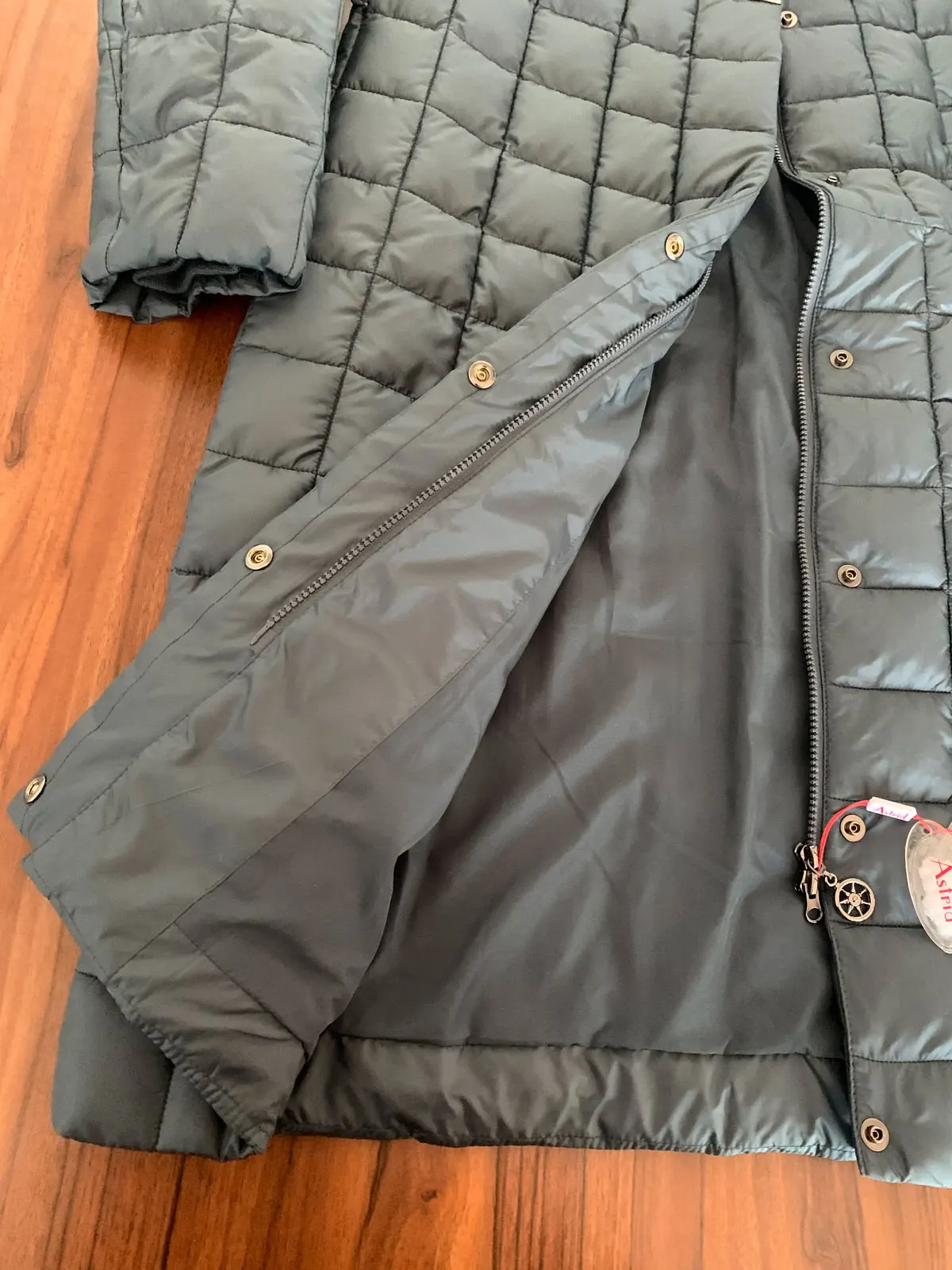 Впервые заказывала пальто маме в подарок. Очень довольна! Точное описание, размер уточняла у продавца. Умничка, быстро отвечает. Заказывала размер XL на ОГ 100, ОБ 104, рост 170, отлично село. И рукава как раз. Продавец вложил купон на 3 доллара. Приятная на ощупь ткань, качественная фурнитура, нитки не торчат. Заказывала зеленый цвет, как указано на сайте, а пришел благородный серый, чему я несказанно рада. Себе тоже куртку заказала. Магазину процветания!