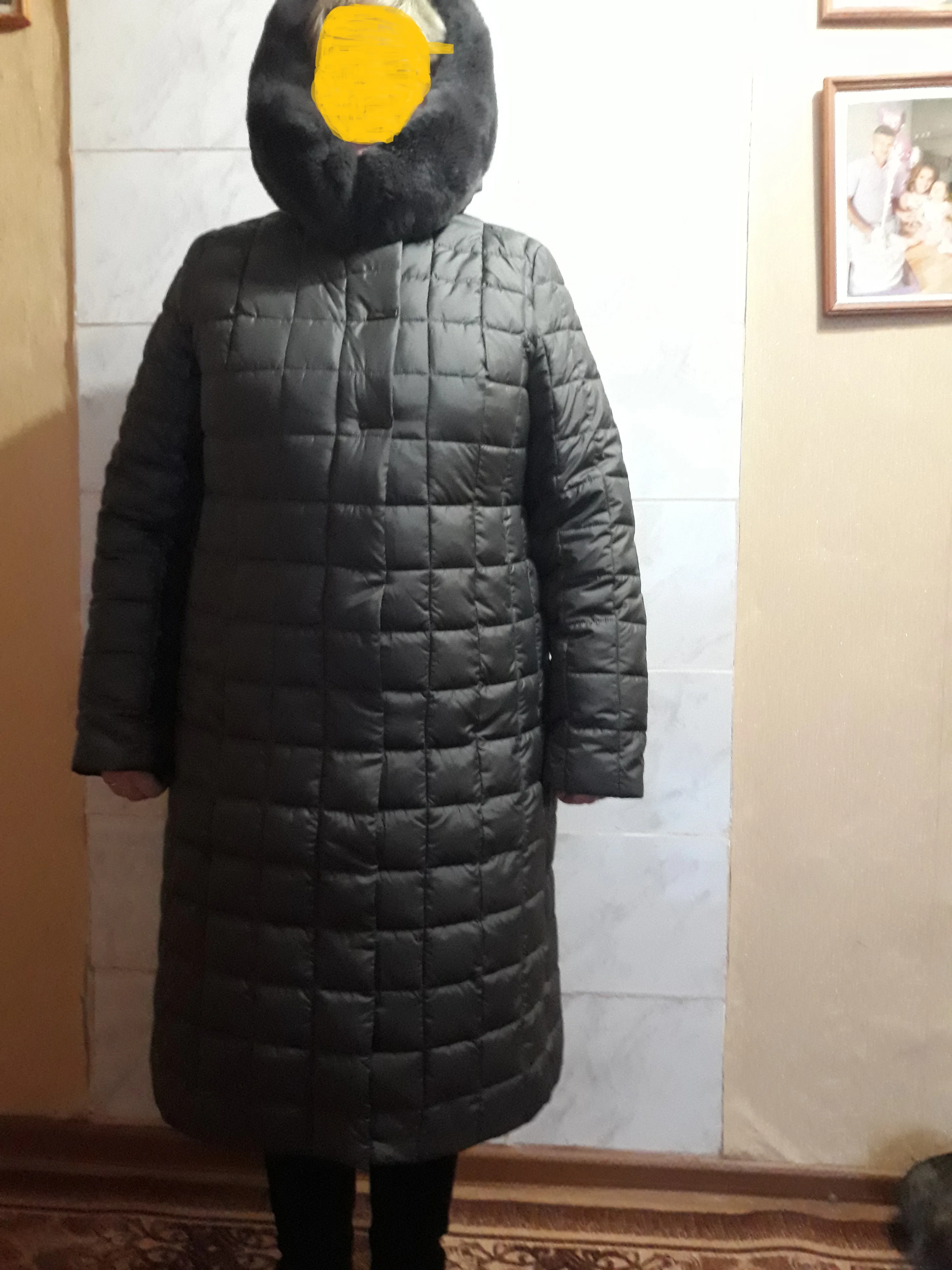 Заказ получили.Пуховик хороший, качество хорошее швы ровные ниток нет.Размер немного свободно я так хотела, можно одеть кофту, мой размер 56.Пальто сидит хорошо.Спасибо.