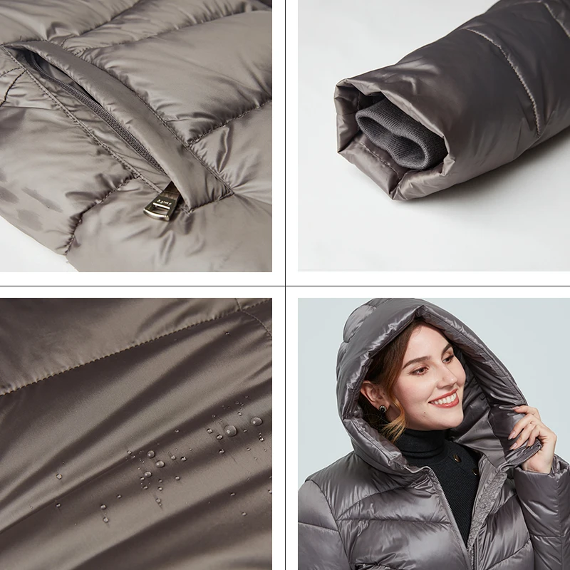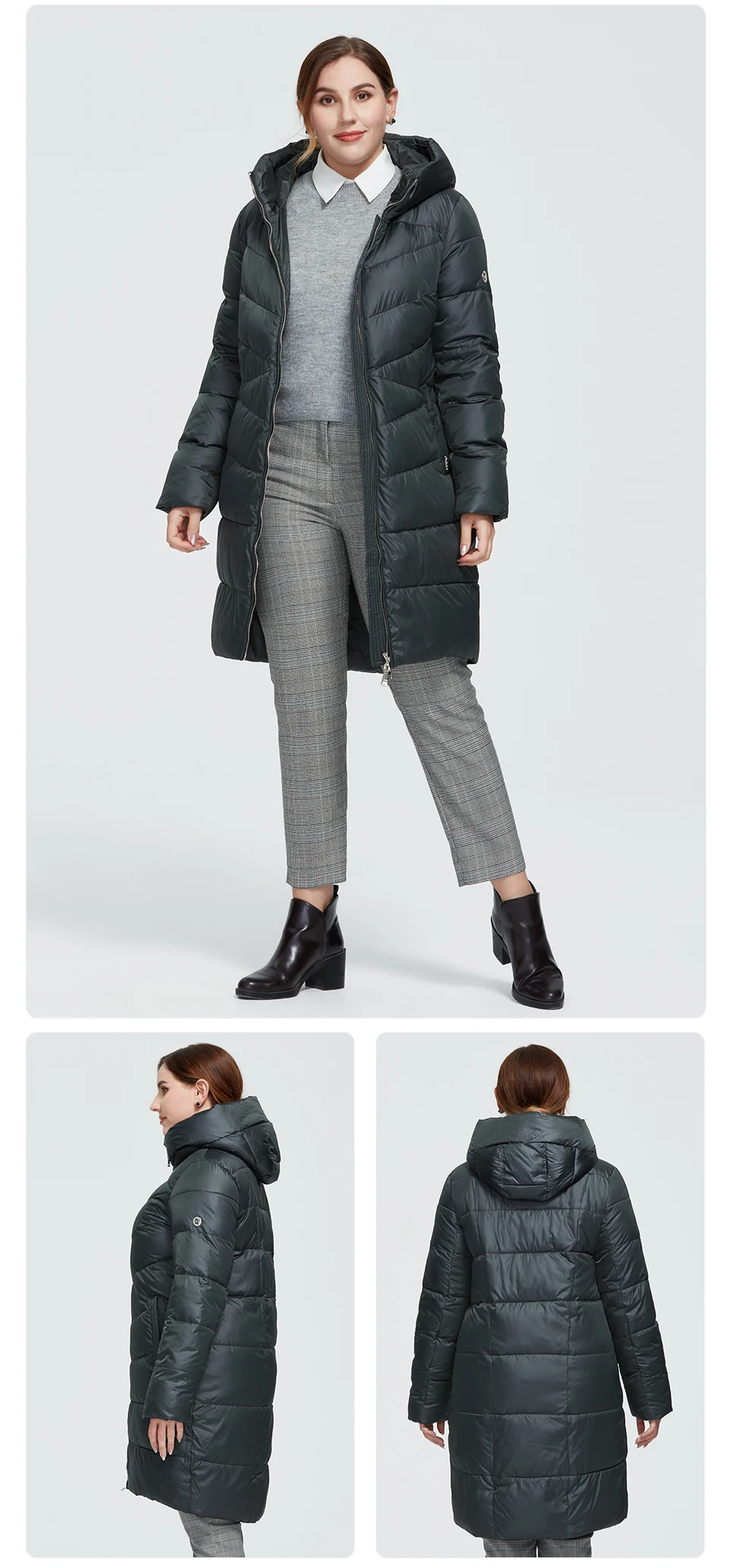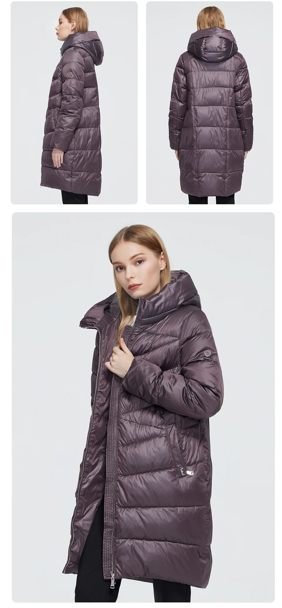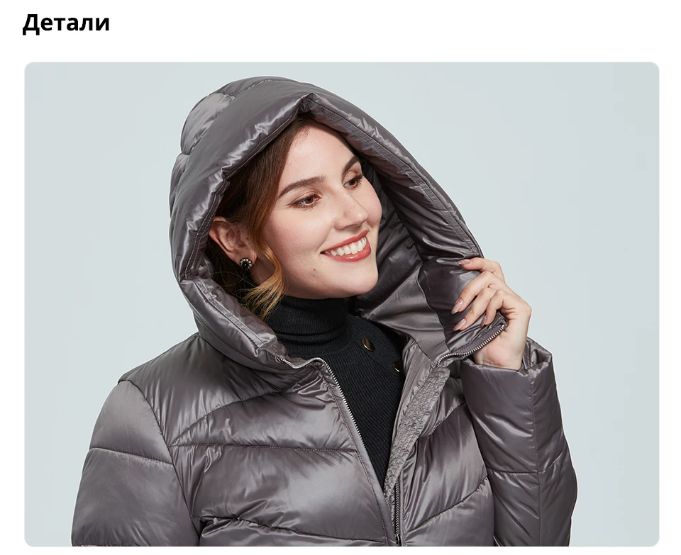 Пальто женское на био-пухе, с капюшоном, зимнее, 2021, 9215
