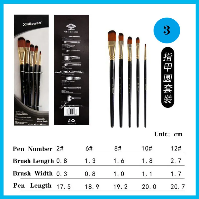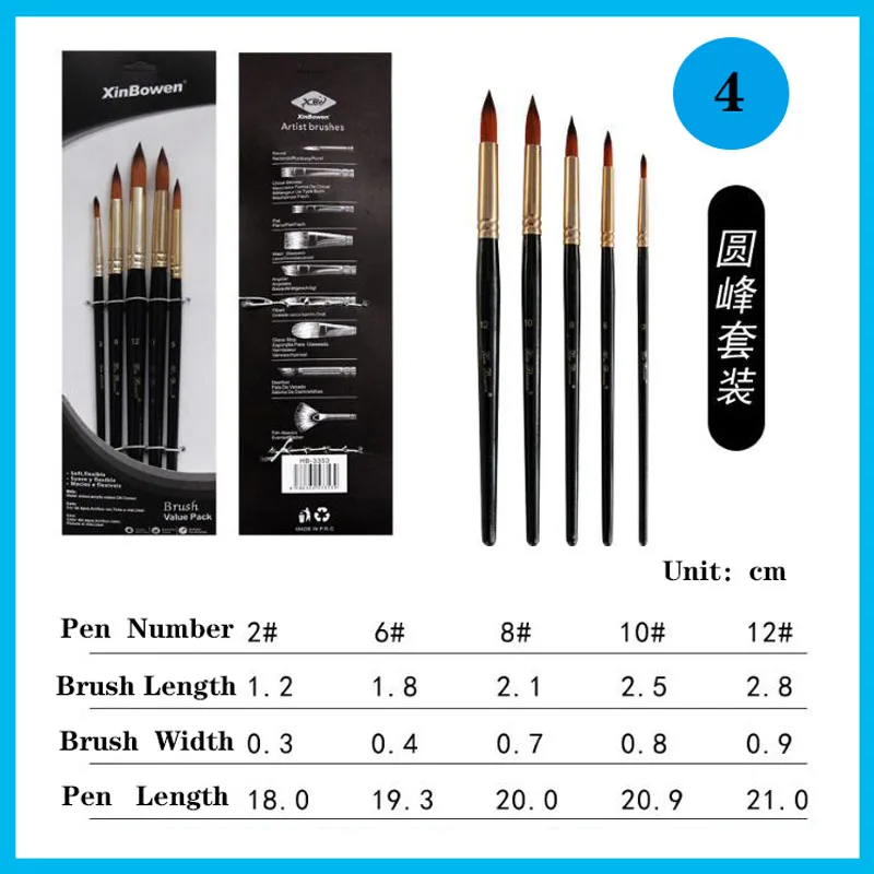 5 шт.компл. кисти для рисования нейлоновая Кисть ручка для акриловых и акварельных кисти с деревянными ручками набор кистей для художественных товаров