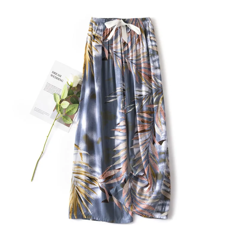 2020 NEW Summer Sleep Bottoms Thin Female Homewear Pants Floral Print Pajamas Pants Wide-Leg Comfortable Elastic Pyjamas Pants