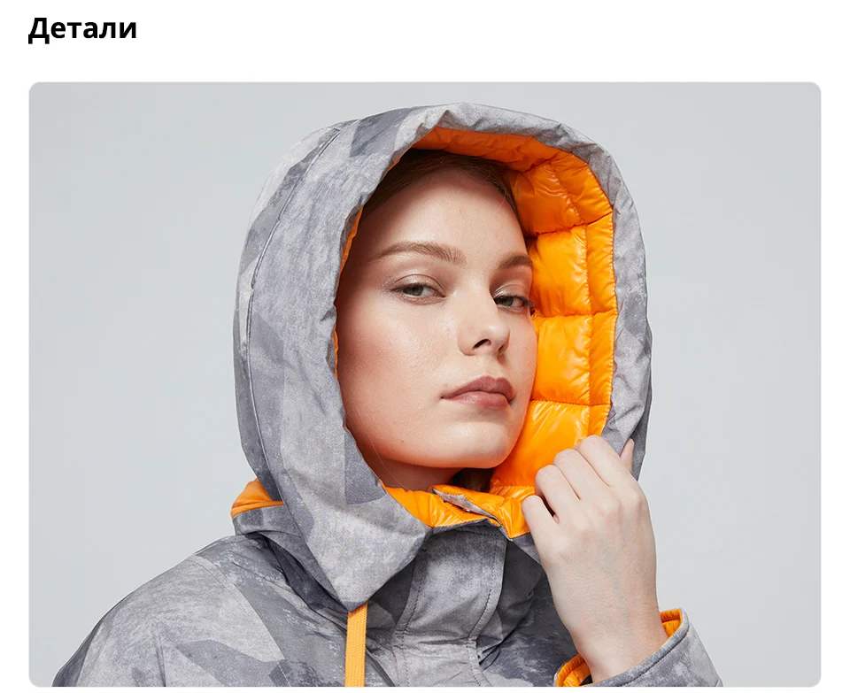 Эта куртка вас вас удивит, это точно. Когда я развернула пакет, первое впечатление было - ну пиндец, я выбросила пять косарей. Главный минус этой куртки: ткань выглядит вживую не так, как на фото, она тонкая и слегка просвечивает, местами видно внутри оранжевый. На фото не передать, на фото и на солнце она бликует и выглядит плотнее). Далее - карманы, их всего два, вот те, где девушка на фото руки держит. Они размером с хорошую дамскую сумочку каждый, но их всего два. Перейдем к плюсам. Сшита очень добротно, крепко, качественно, без запахов и зажеванных кусков. Очередной ее плюс - она очень лёгкая на вес. Тест на температурный режим: из-за веса чудес не ждали. И тут ещё один плюс - не напрягаясь, куртка легко держит минус 12, в ней жарко! Но не потеешь, то есть влагообмен присутствует. Более сильных холодов ещё у нас не было. Отдельно застёгивающийся воротник - вообще вещь, шарф не нужен. На обхваты 107-95-112 взяла XXL, сидит свободно, толстовка влезет. Рекомендую.