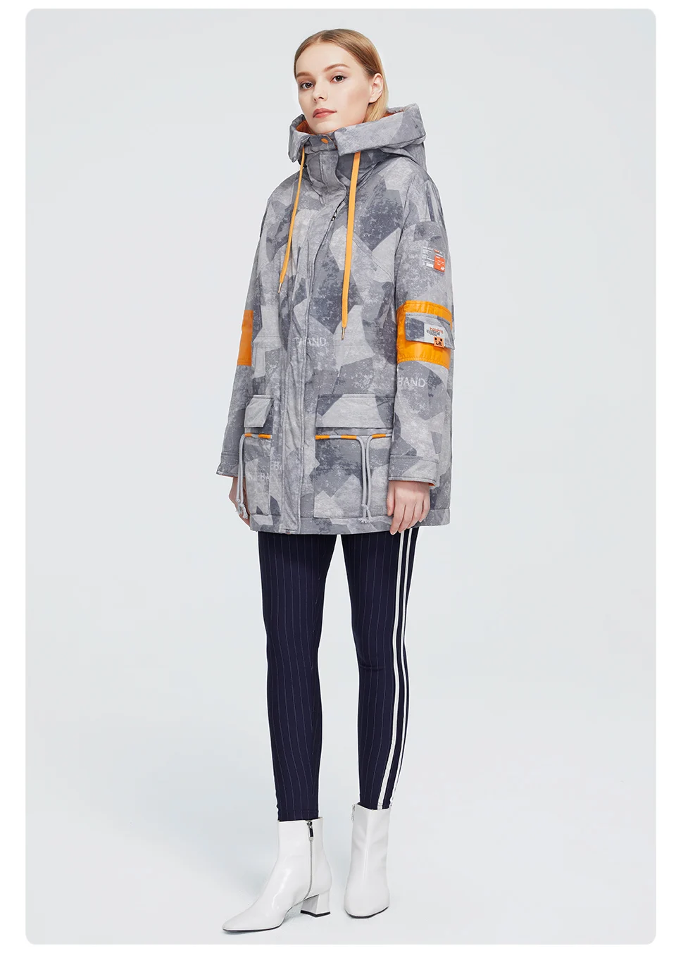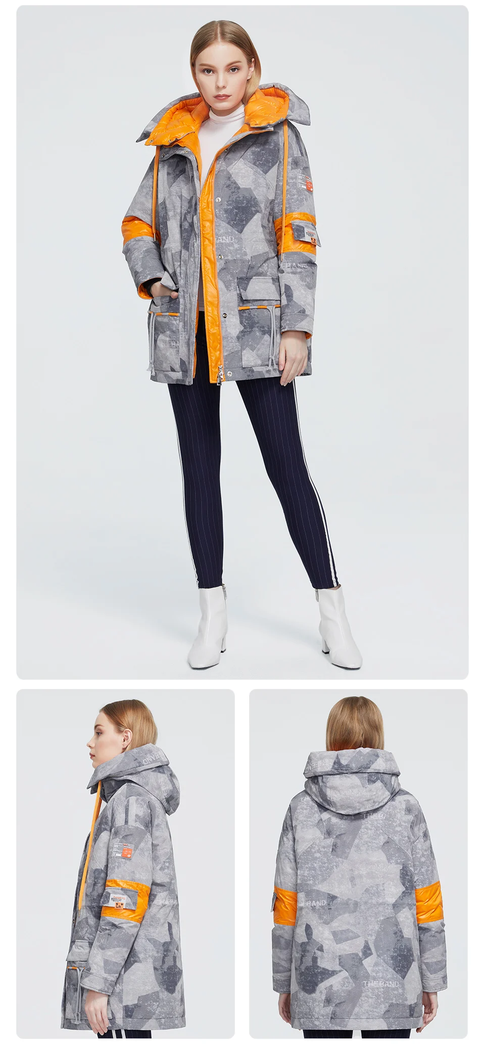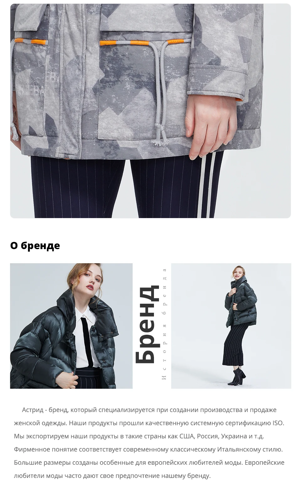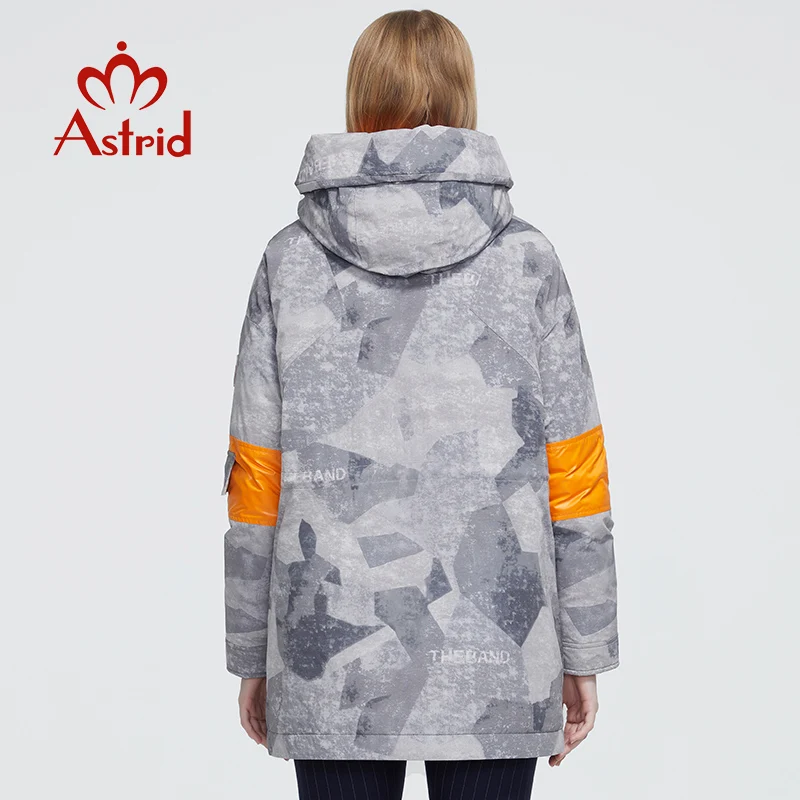 Astrid 2021 Новая зимняя Женская внизу Женское пальто; Теплая парка; Модные цвета камуфляжа версия рождённые побеждать (утепленная куртка с капюшоном, женская одежда ZR-7222