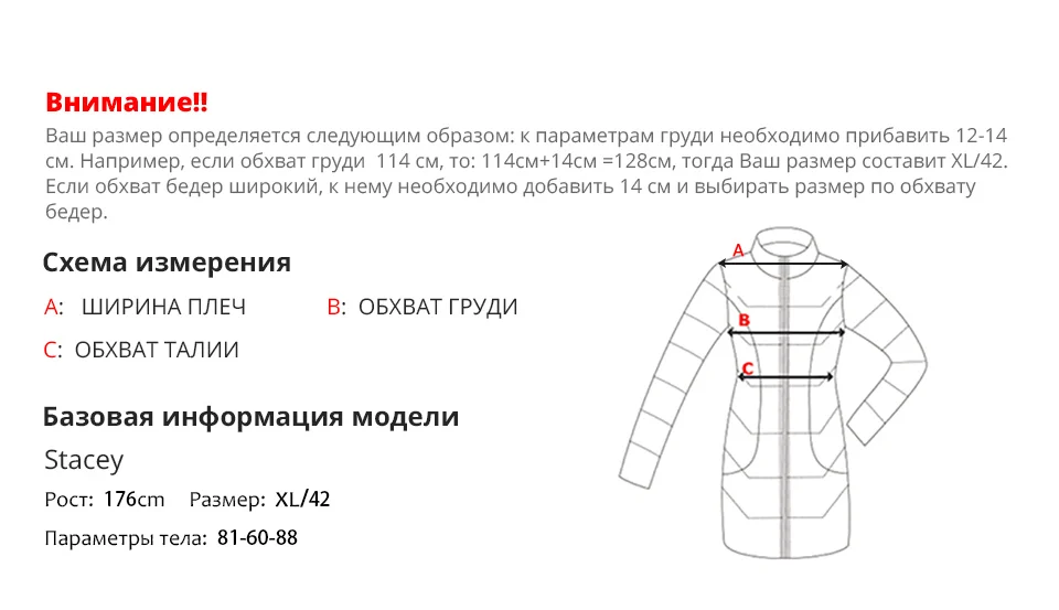 Качество супер. Размер S подошел на 84-64-95 и рост 170. При этом длина рукава нормальная! На зиму не особо теплая. В -2 в ней уже дискомфортно. Скорее весна-осень.