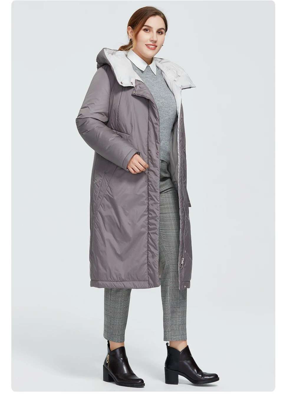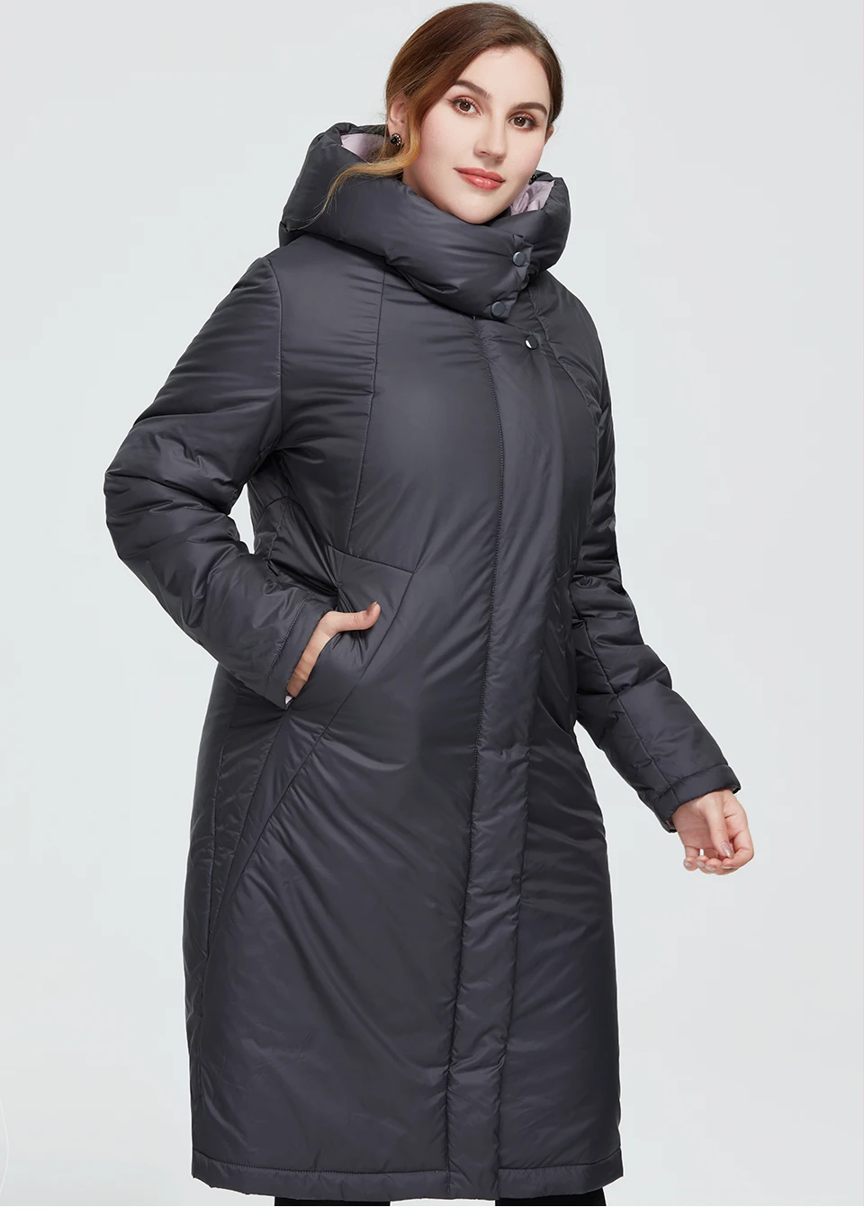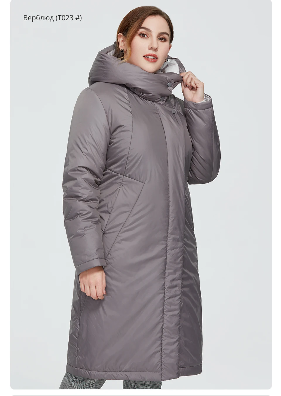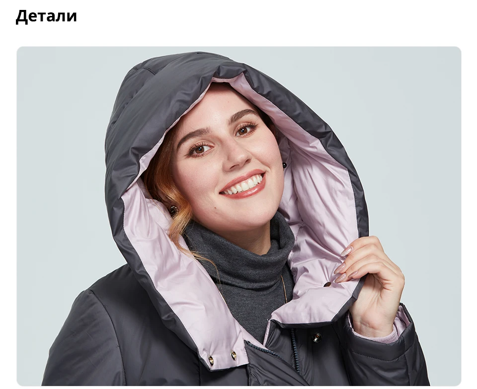 Пальто женское на био-пухе, с капюшоном, зимнее, 2021