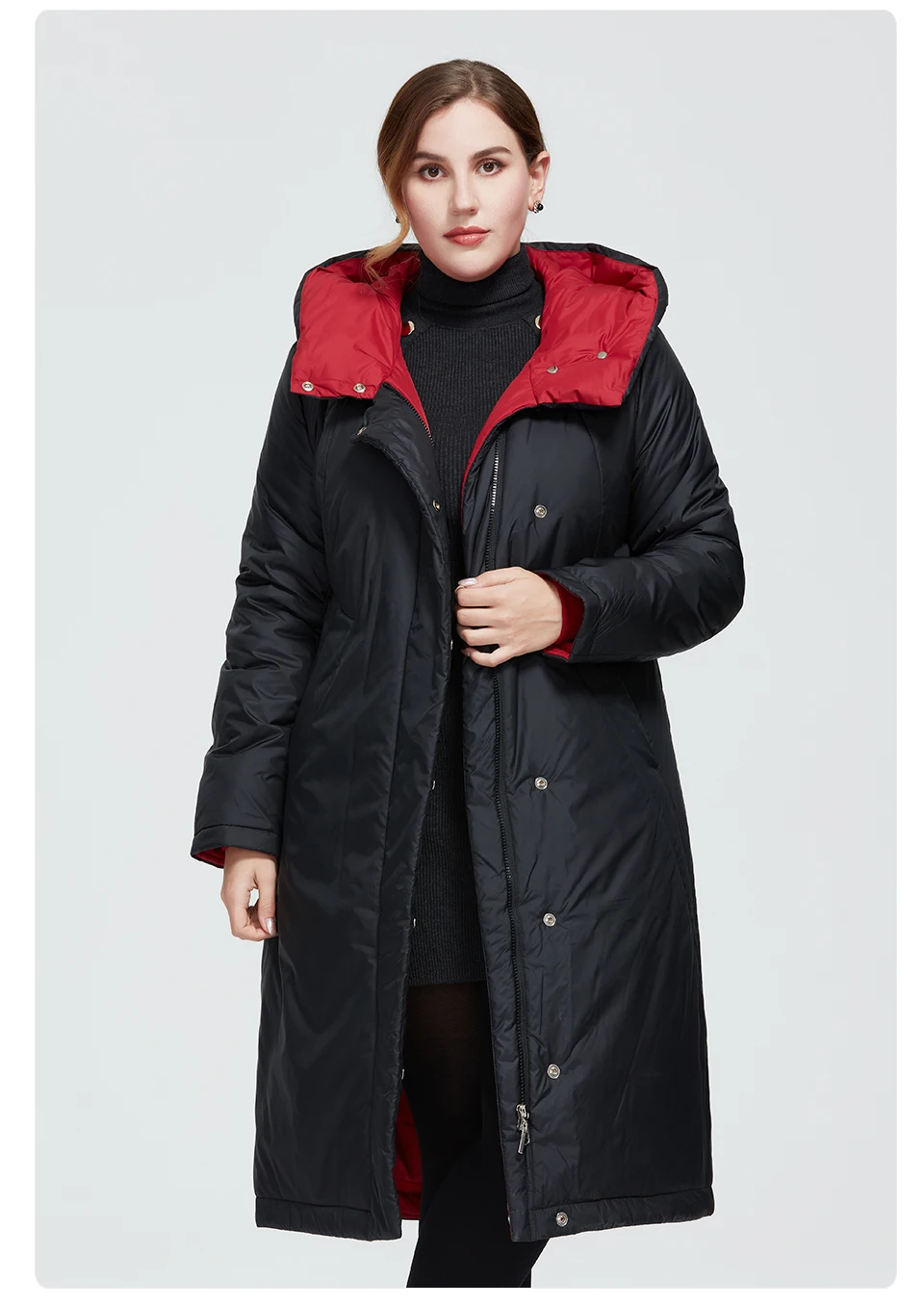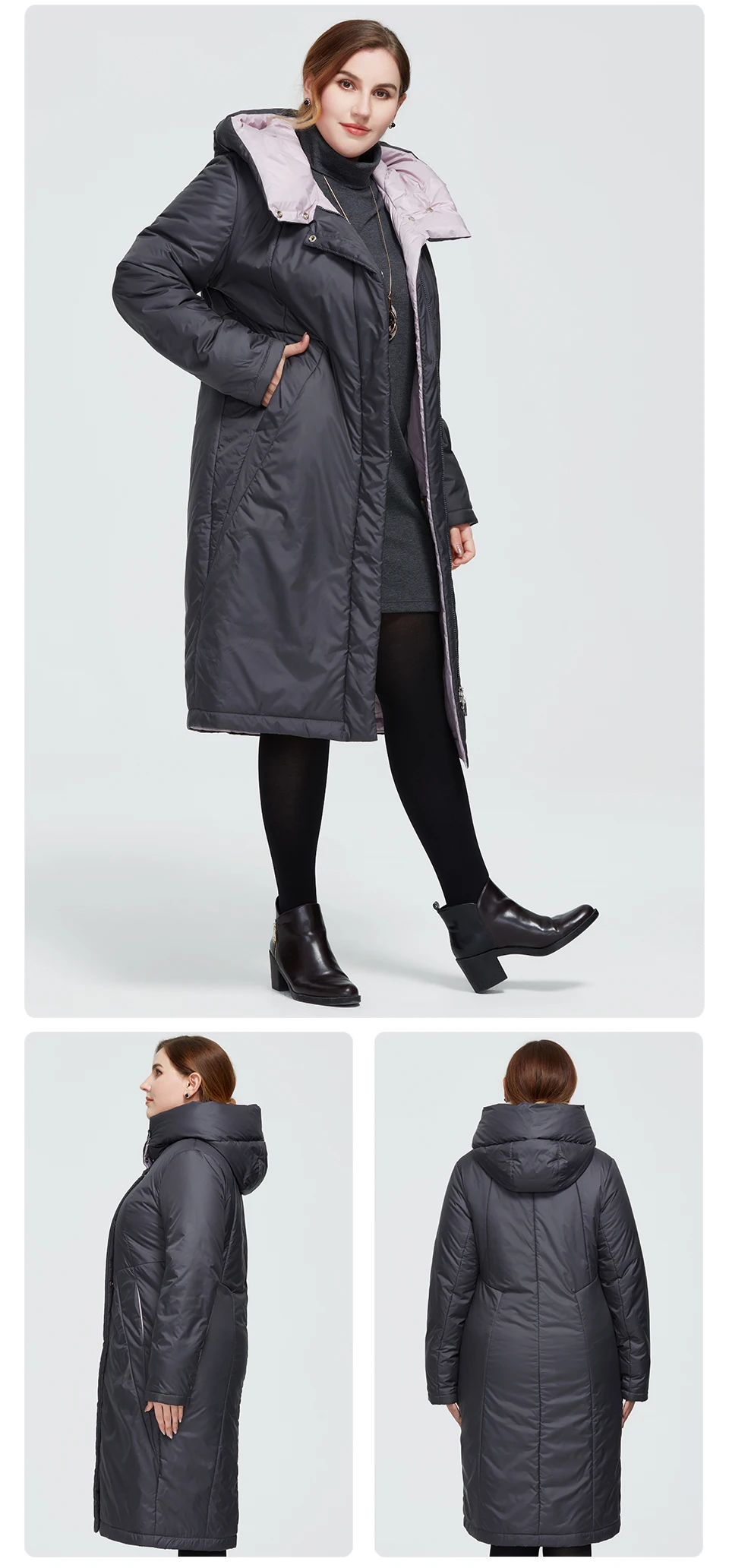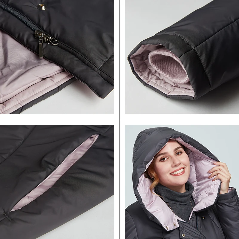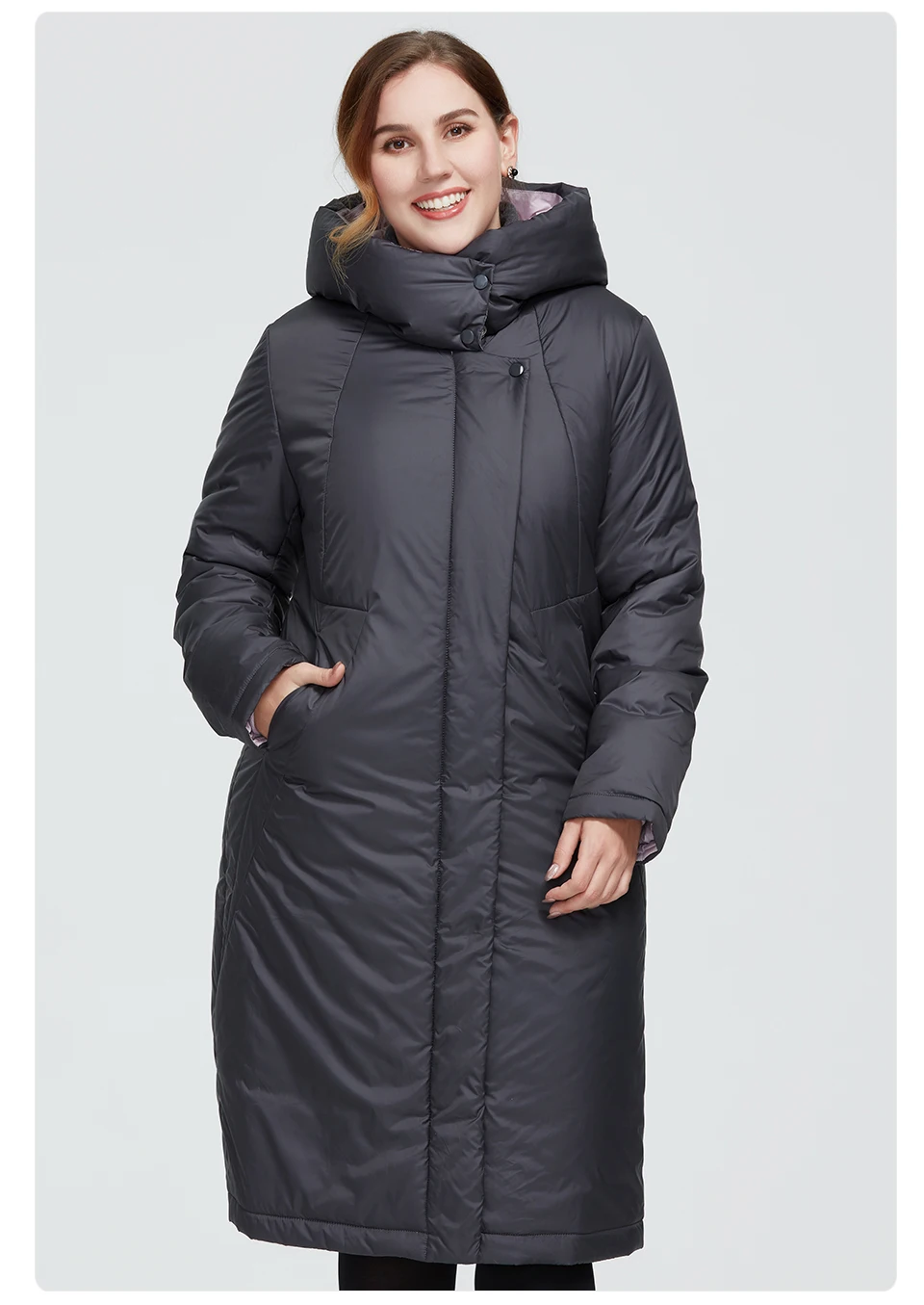 Пальто женское на био-пухе, с капюшоном, зимнее, 2021