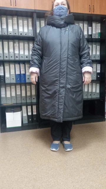 Пальто получила. Доставка быстрая, 14 дней до Челябинской области,осуществляется транспортной компанией СДЭК , курьер принёс домой. По качеству всё на высшем уровне, утеплитель распределен ровно, карманы на магнитах, что очень удобно. Цвет приятный, благородный, пальто мягкое и комфортное, по размеру подошло отлично! Капюшон глубокий, красивый, на рукавах манжеты.Я в восторге, пальто очень понравилось. Берите не пожалеете! Мой рост 165 см, Ог.102см, Об 110 см. на Российский 48 подошёл размер XL. Спасибо продавцу и магазину Astrid !
