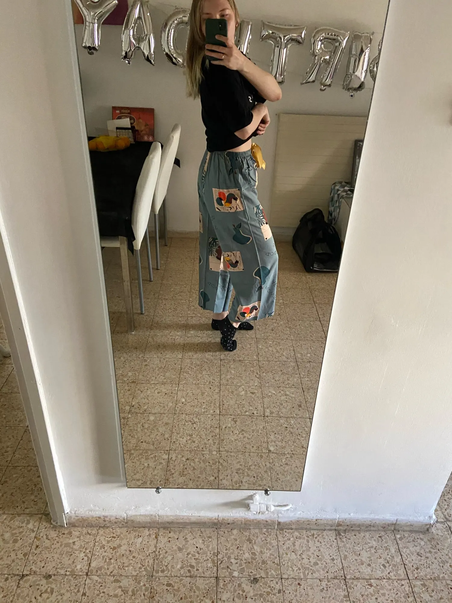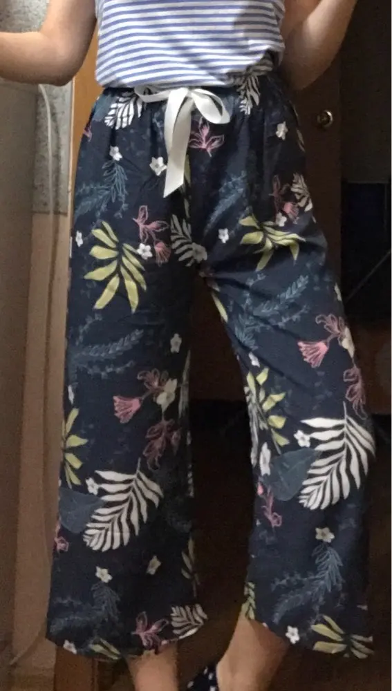 Классные брючки для дома,очень удобные и свободные,летом будет особенно комфортно- ткань приятная ,тоненькая, принт четкий ,красивый..Рост 161, ОТ-68, ОБ-92.Доставка около 3 недель.Понравились, возможно закажу ещё.