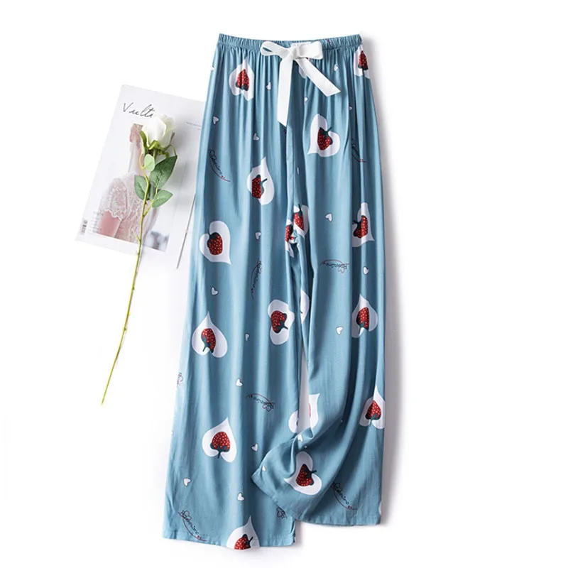 Штаны пижамные женские, из тонкого хлопка, с принтом клубники, летние, 2020