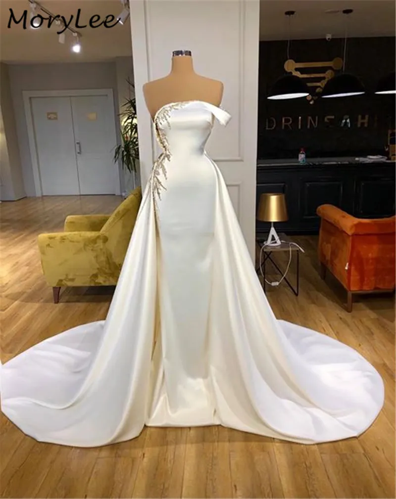 Женское шелковое атласное платье с одним открытым плечом и шлейфом
