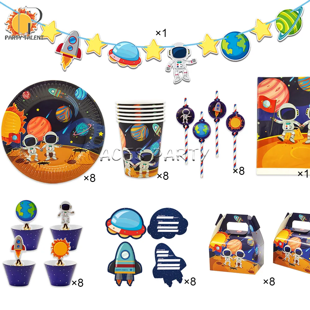 58 шт. для до 8 лет космонавта для мальчиков Солнечный космический тематические праздничные товары для дня рождения посуда комплект пластины Стекло соломы баннер скатерть и т. д.