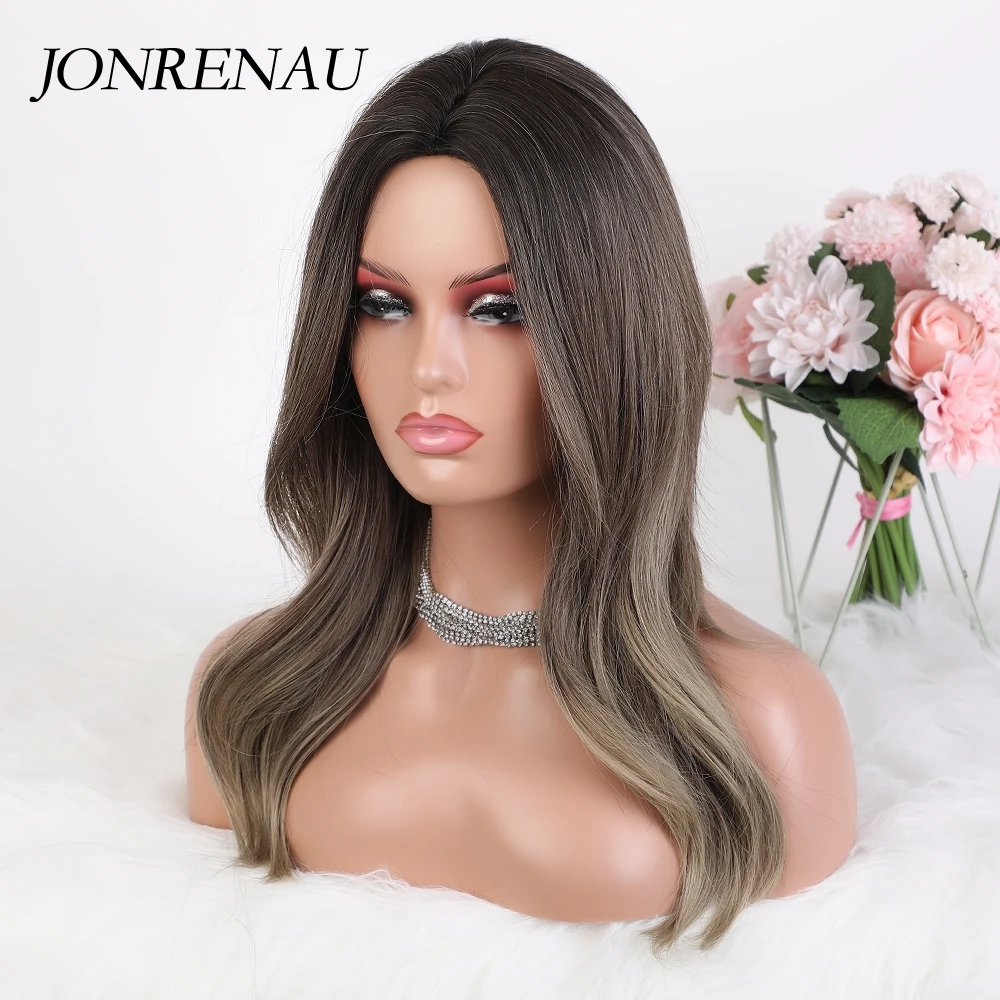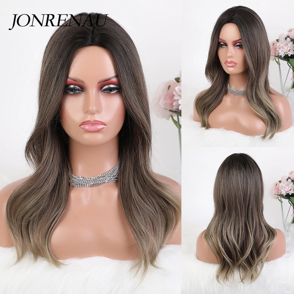 Парик JONRENAU средней части для чернокожих и белых женщин, длинные натуральные волнистые синтетические волосы для косплея, вечеринки, ежедневного использования