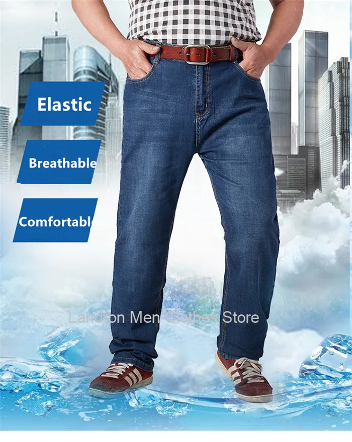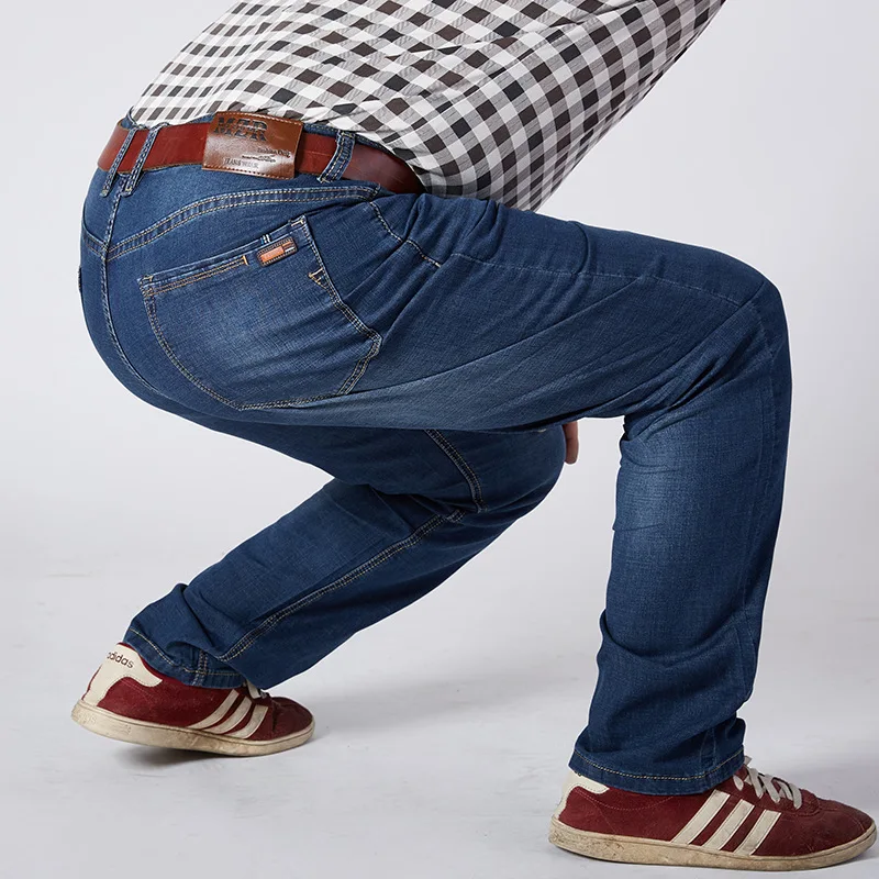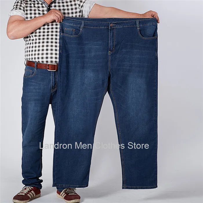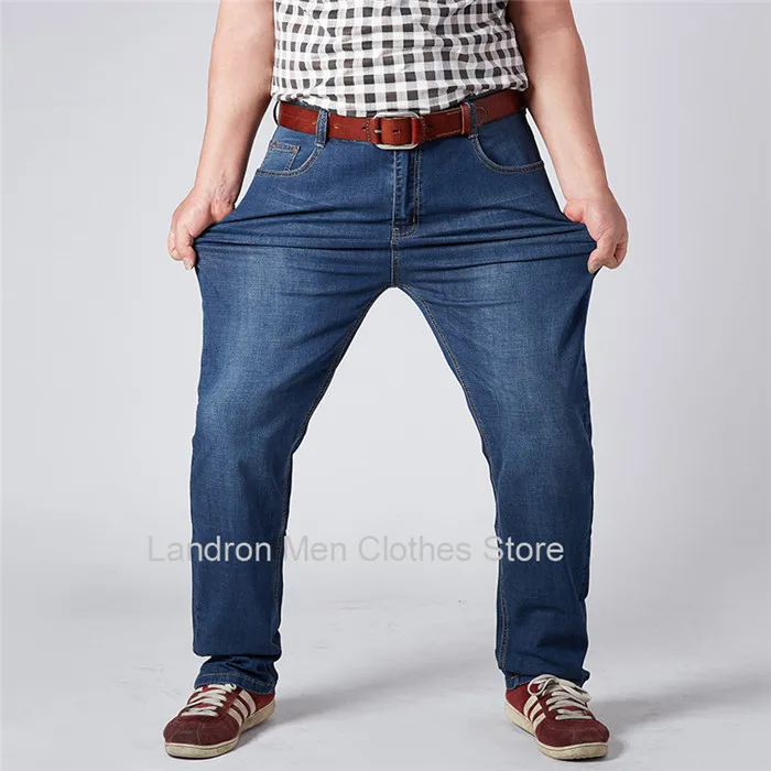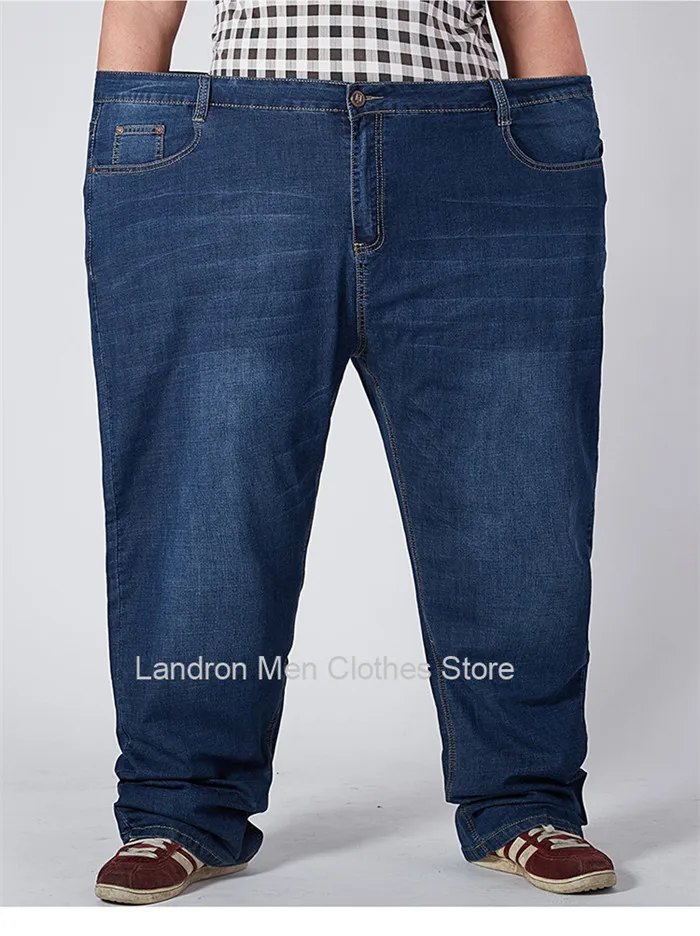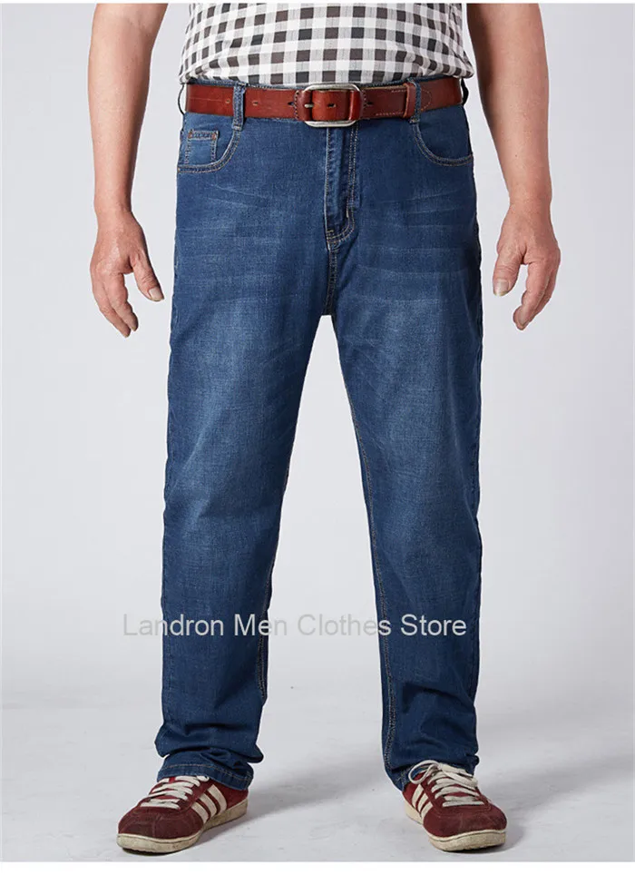 Джинсы мужские Стрейчевые большого размера, классические свободные брюки из денима, рабочая одежда с завышенной талией, 44, 46, 48, 50, 52
