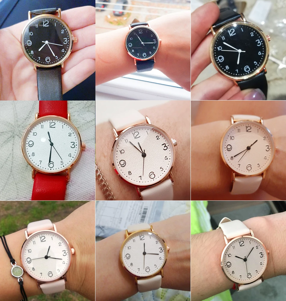 Модные женские часы с кожаным ремешком, простые женские часы, кварц...