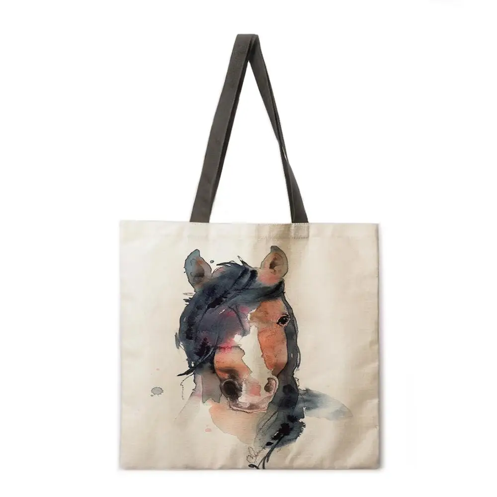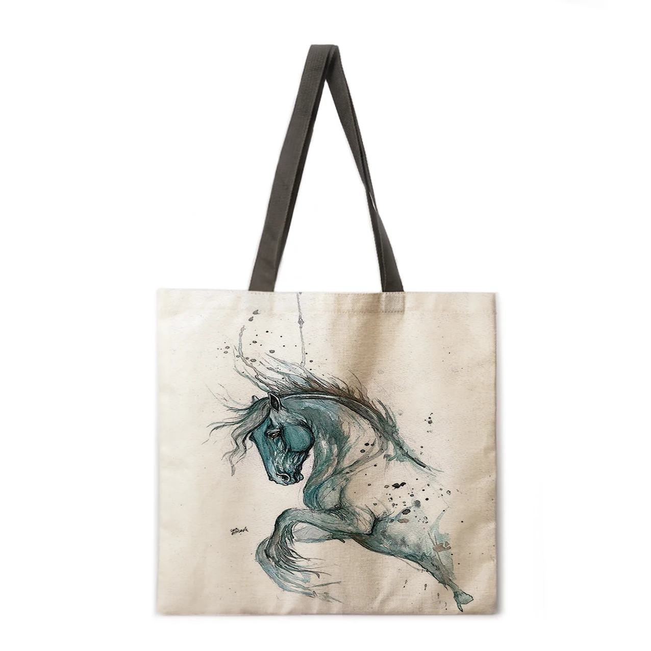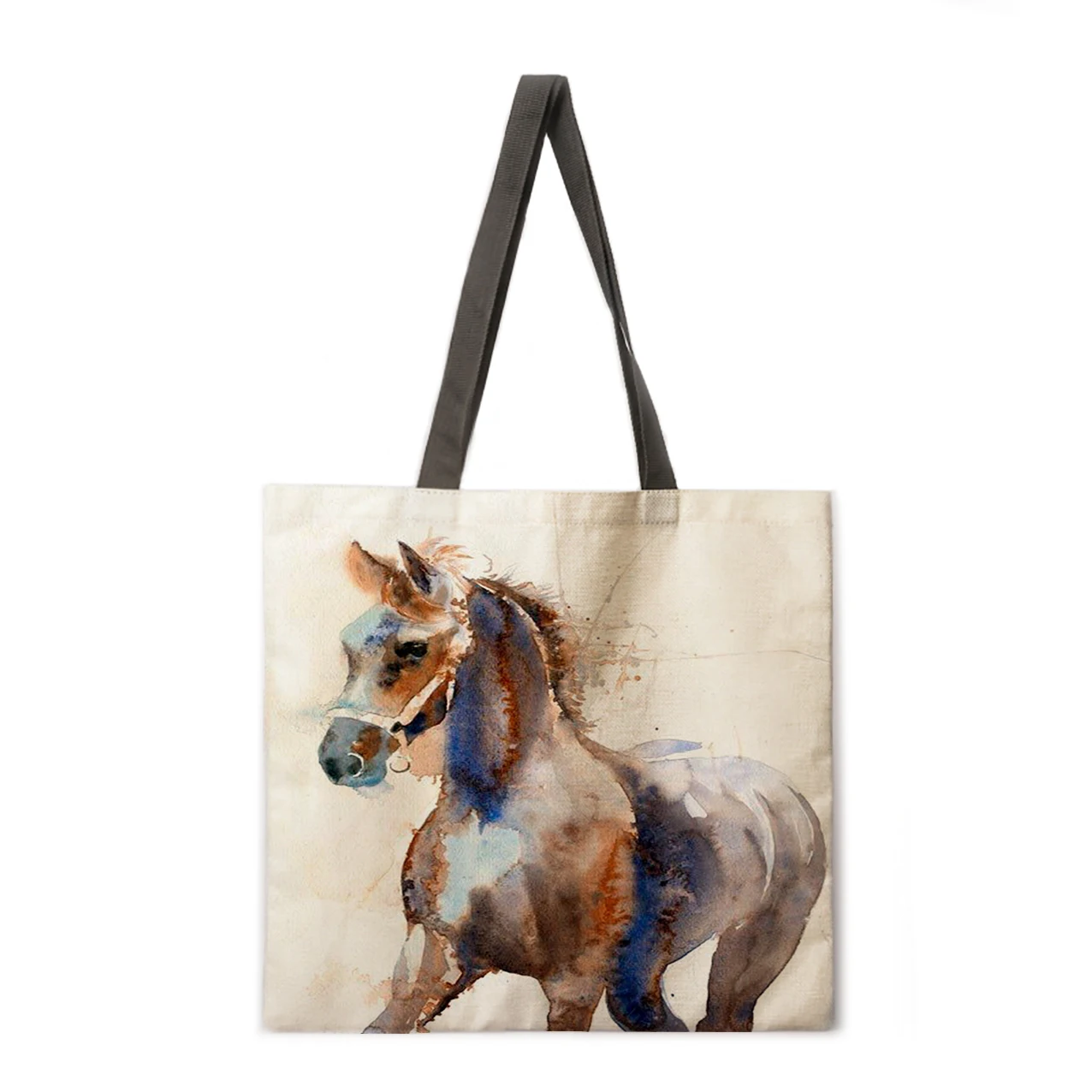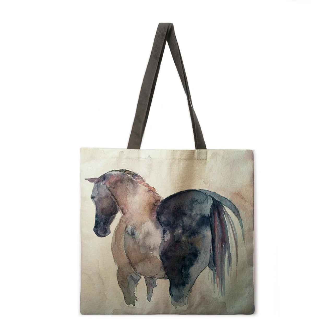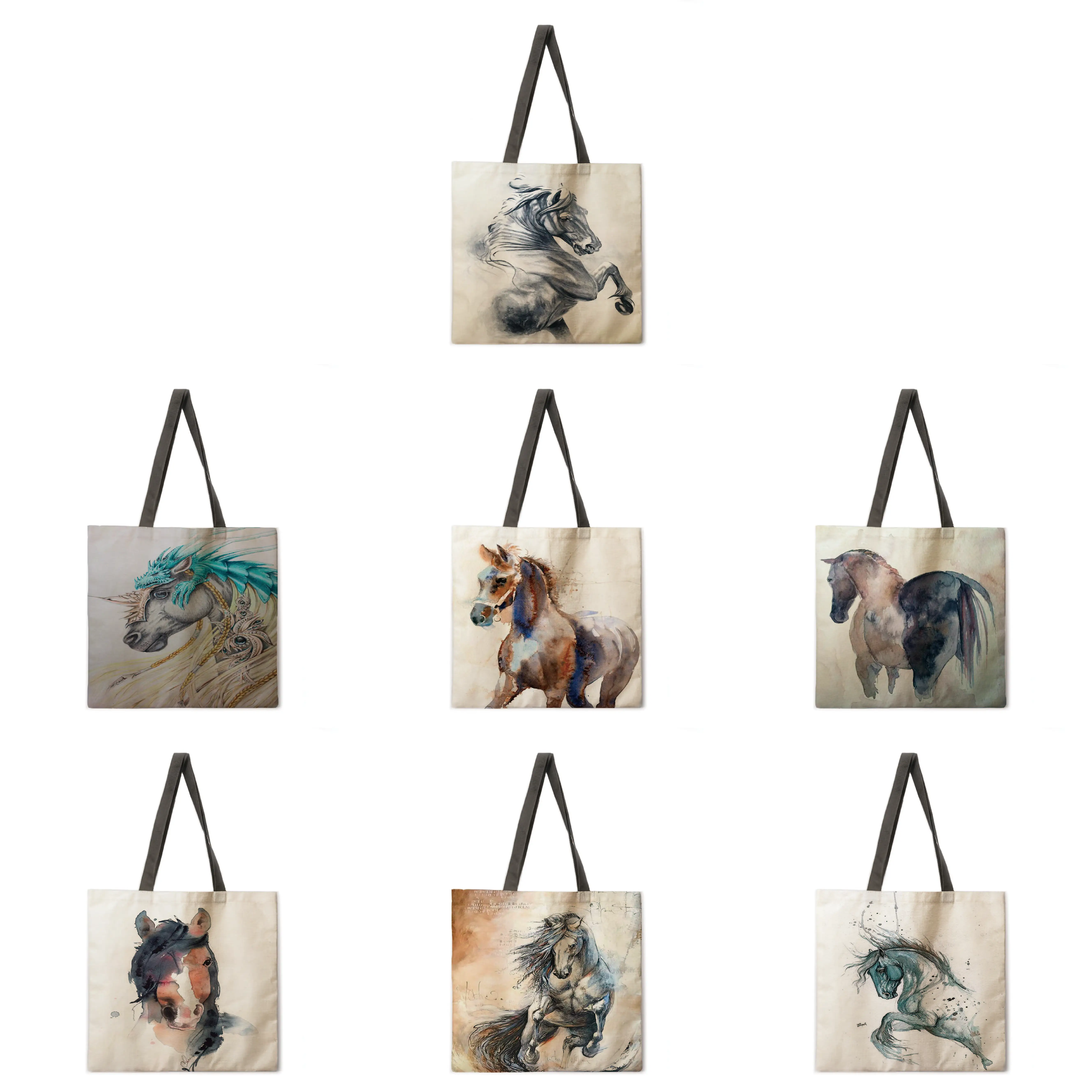 Сумка-тоут для отдыха с рисунком лошадей, льняная многоразовая уличная пляжная сумочка для покупок, тоут для отдыха