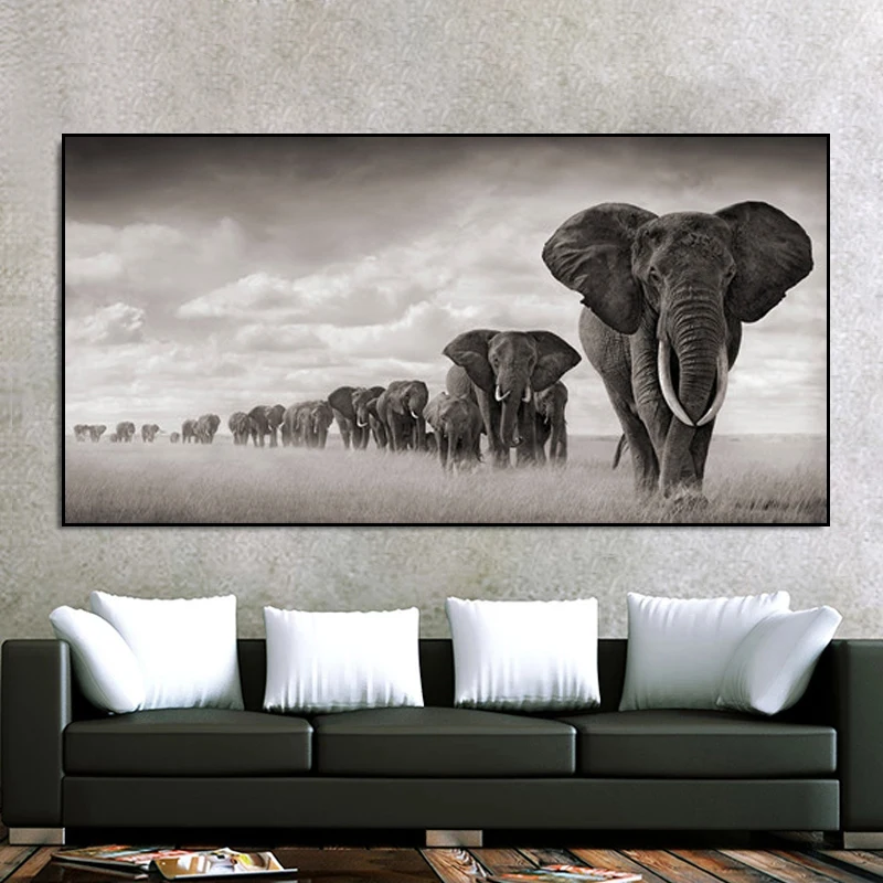 Картина на холсте с дикими животными, черно-белыми африканскими слонами, постеры Скандинавия, настенные картины для гостиной