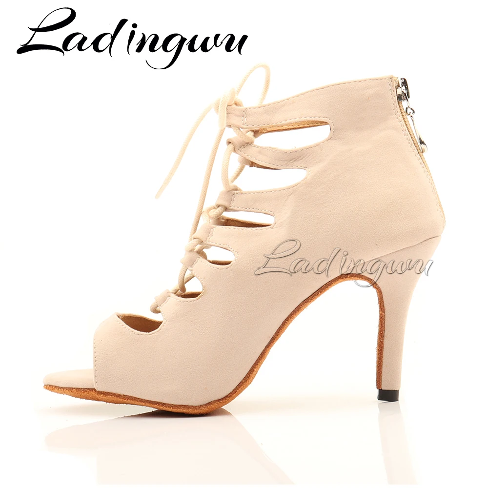 Женские замшевые танцевальные туфли Ladingwu, бежевые туфли для тан...