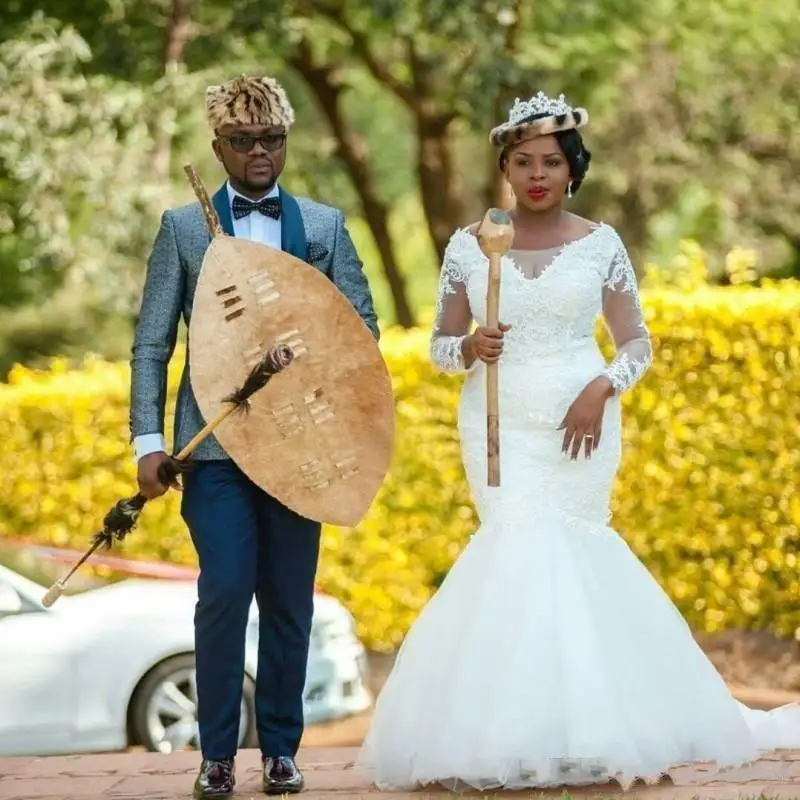 Винтажное свадебное платье с длинным рукавом в африканском стиле, новинка 2020, кружевное женское платье из тюля с вырезом русалка, свадебное платье