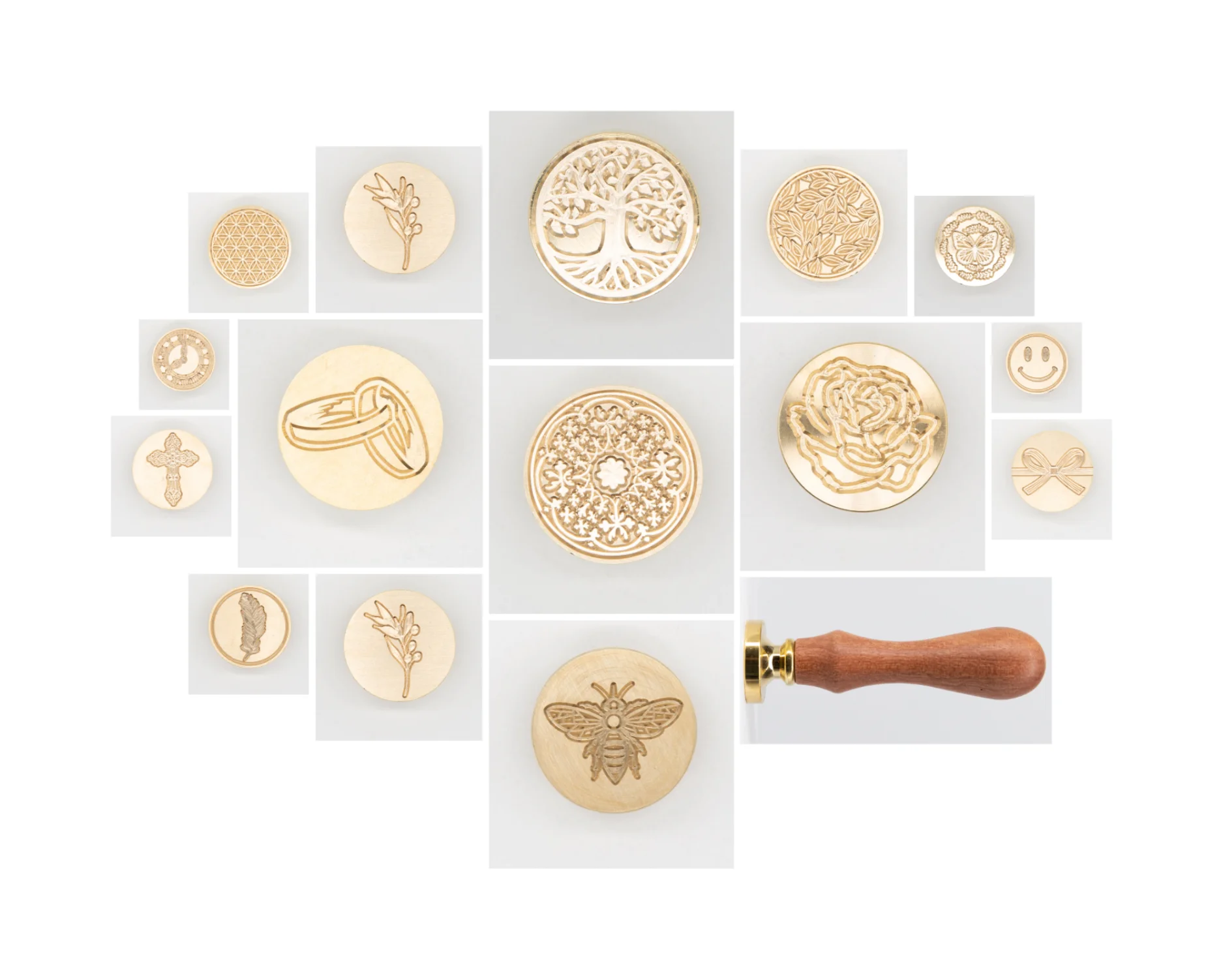 Я заказал 4 различных штампа для восковой печати и ручку, потому что я думал, что они не поставляются с ручками. К моему удивлению, все штампы для восковой печати поставляются с ручками. Но теперь у меня есть дополнительная ручка без печати (возможно, моя вина). Все они хорошего качества.