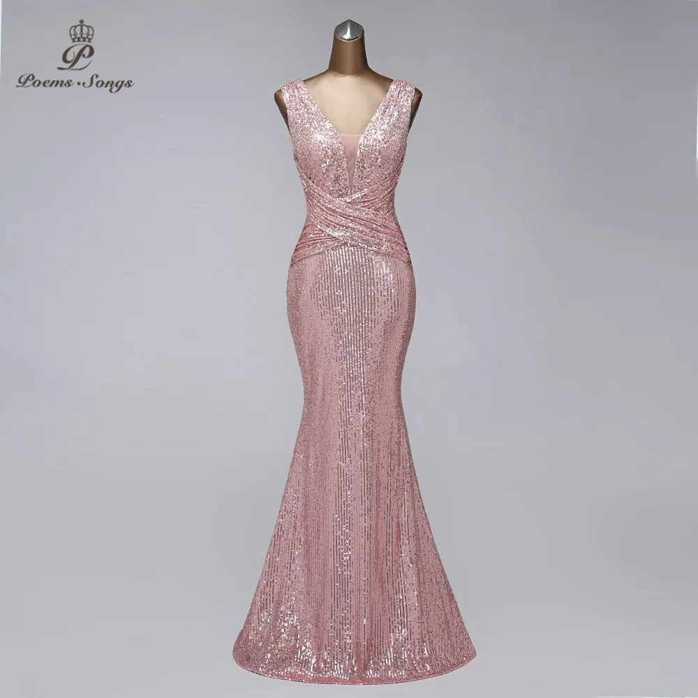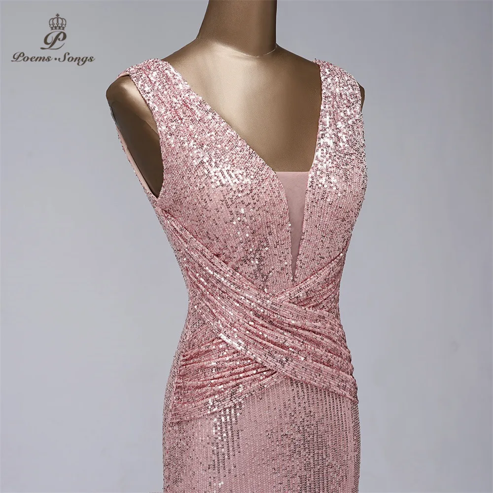 Женское вечернее платье с блестками, элегантное розовое платье для выпускного вечера, светоотражающее платье для вечеринки