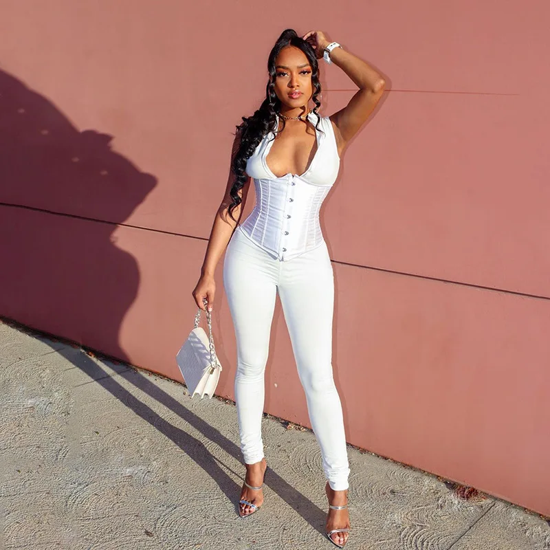 FeatureSolid Bodysuit Ensemble Femme Casual Two Piece Set