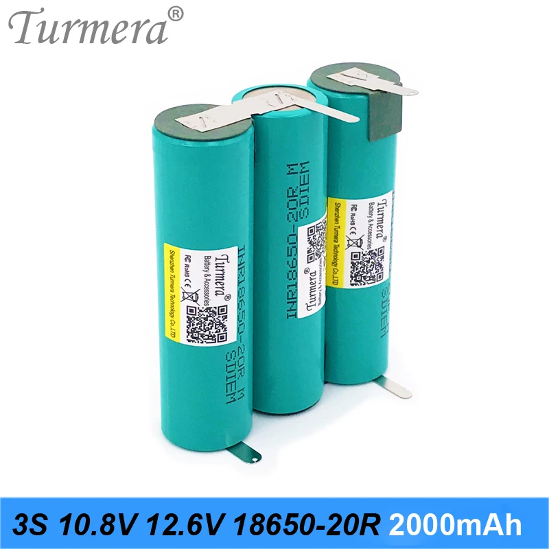 Turmera 3S 10,8 V 12,6 V INR18650-20RM 2000mAh 20A батарея для пайки 12V отвертка Shrika и пылесос