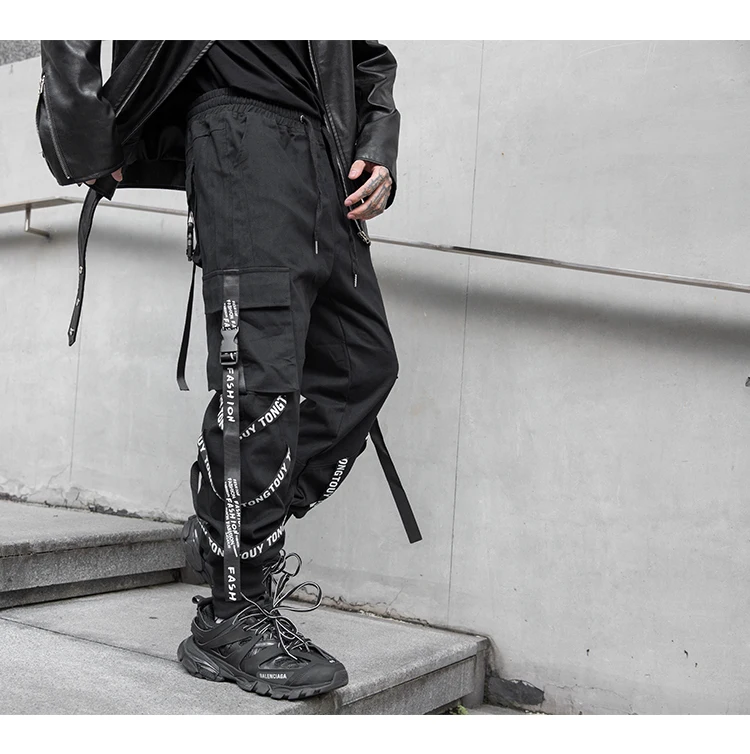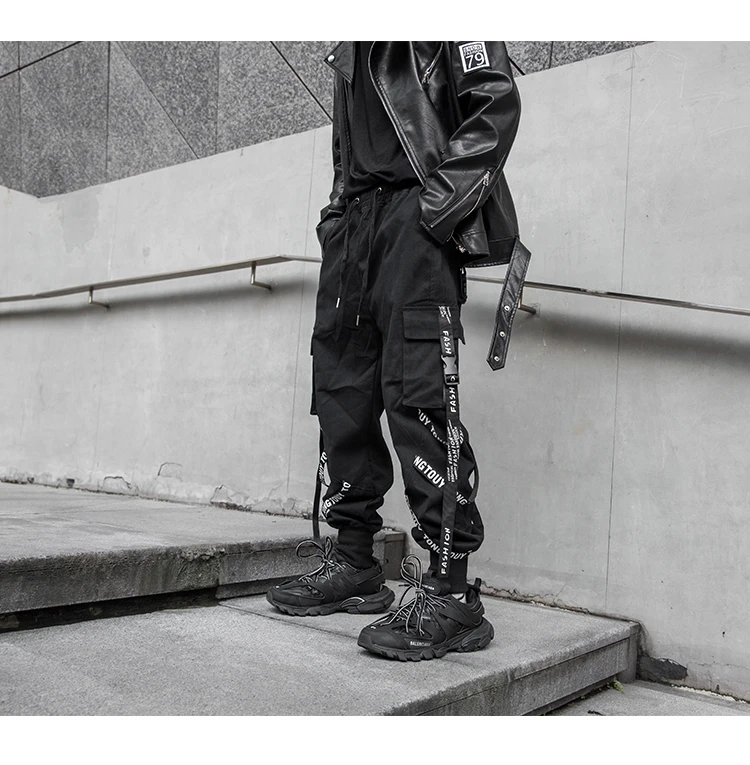 Уличная мода для мужчин, уличная мода, новые штаны-шаровары с лентой, мужские повседневные спортивные штаны в стиле хип-хоп, штаны для бега