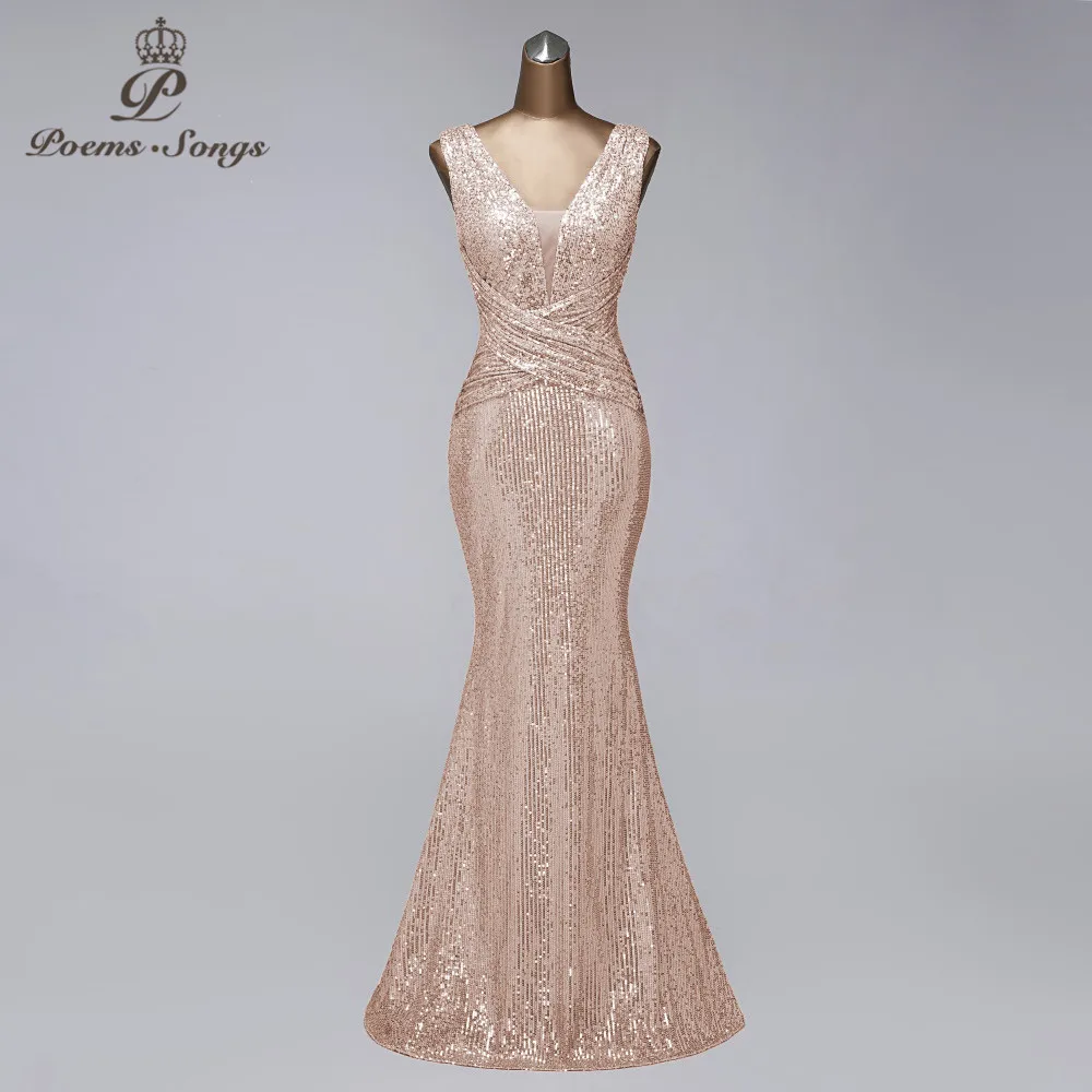 Женское вечернее платье с золотыми блестками, элегантное платье для выпускного вечера