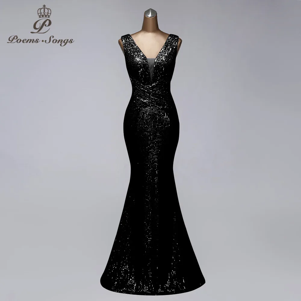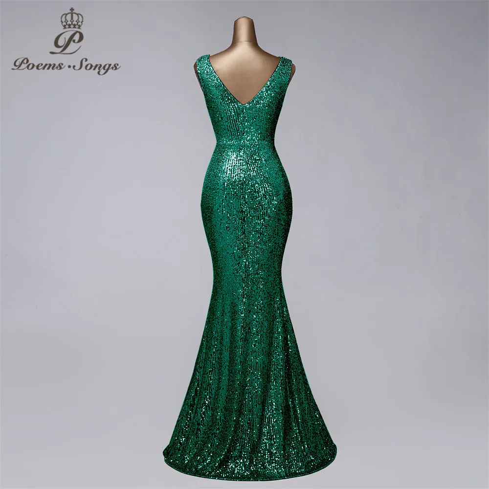 Женское вечернее платье с блестками, элегантное платье с глубоким V-образным вырезом для выпускного вечера