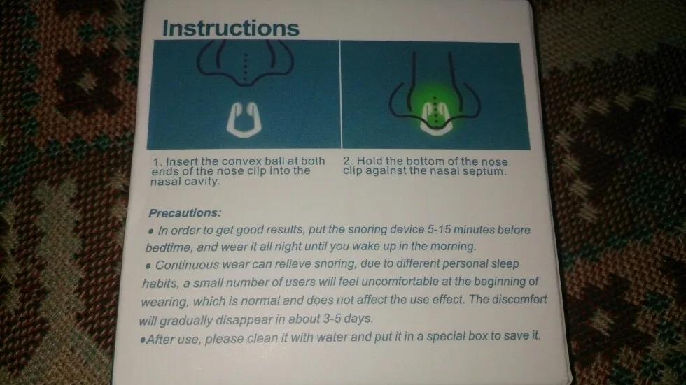 При первом использовании этого продукта. Я спала комфортно в носке. Сначала, прежде чем засыпать, я был в курсе ношения продукта. На самом деле, когда я просыпаюсь, я чувствую, что он сидит у меня в носу. Только когда я касался, я убедился, что они на самом деле были все еще у меня в носу И я не жаловался на храп.