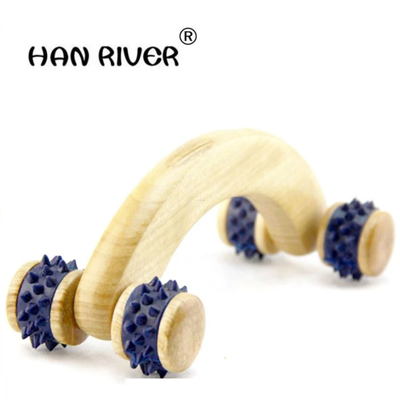 Новый массажер из натурального дерева, изогнутый круглый роликовый массажер для тела, ручки с нажимом, изогнутый круглый тонкий роликовый массажер
