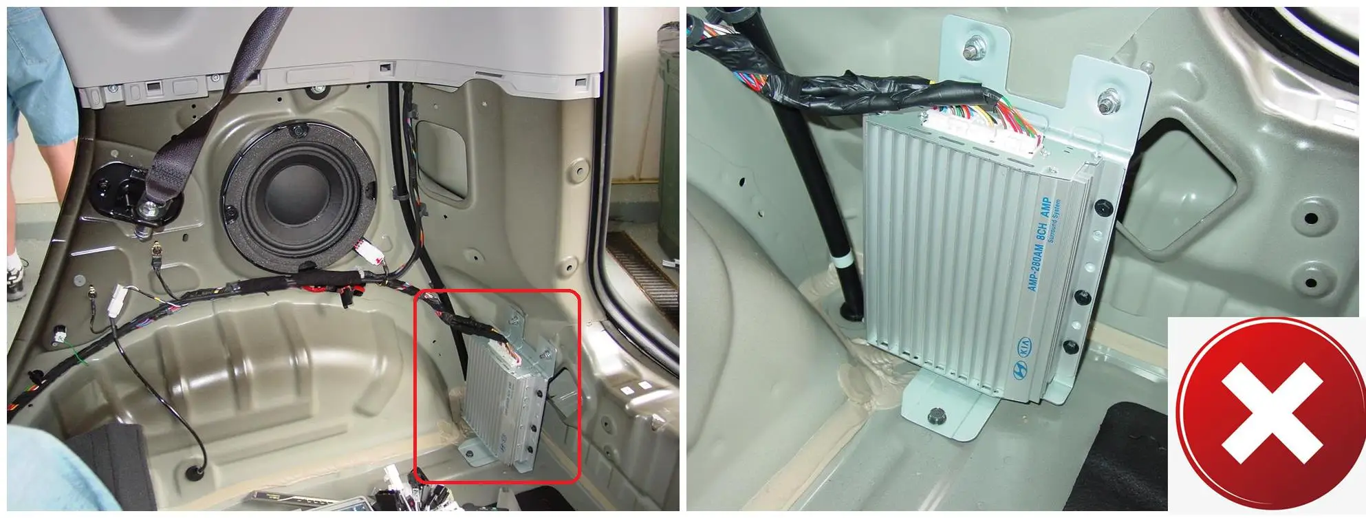 Привет, друг, Если ваш автомобиль имеет усилитель OEM, пожалуйста, не покупайте. Наш продукт не может поддерживать усилитель. Спасибо Заводской усилитель, расположенный в правой задней боковой панели Пожалуйста, проверьте перед размещением заказа.