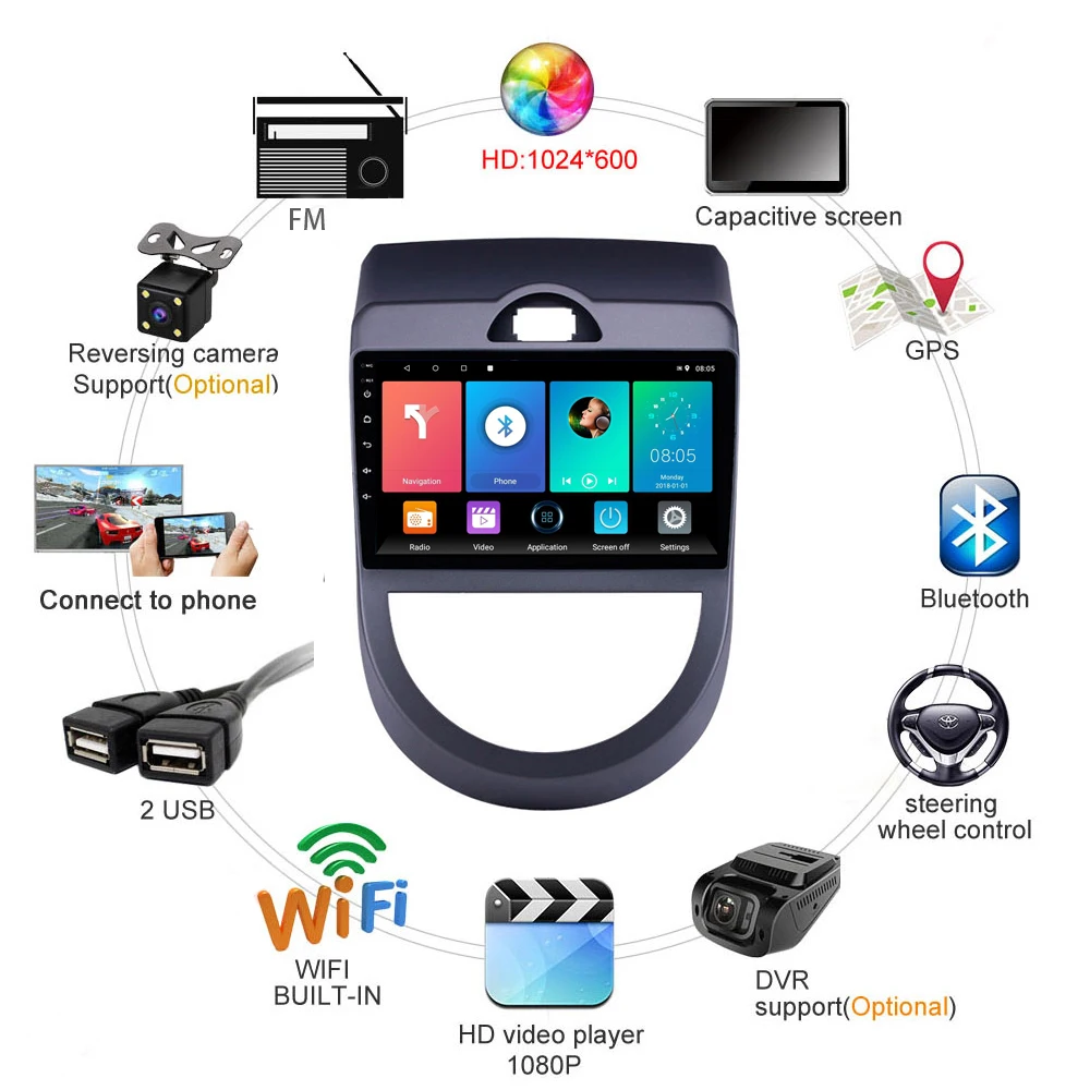 Для Kia Soul 2010-2013 9 дюймов Android 8,1 2 Din Автомобильный мультимедийный стерео плеер навигация GPS WIFI радио