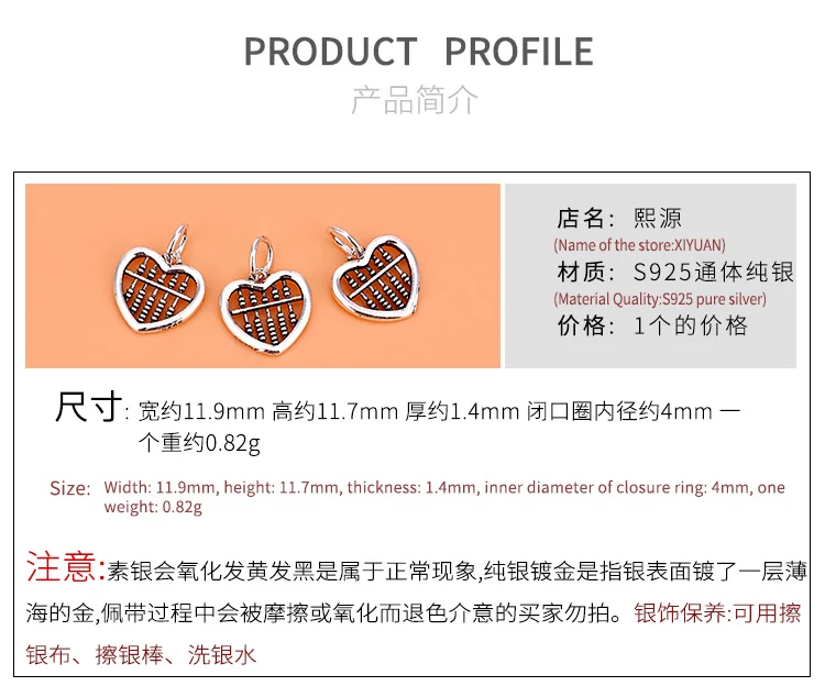 Ожерелье Браслет античный кулон S925 стерлингового серебра ожерелье браслет в форме сердца счеты кулон ювелирные изделия DIY аксессуары