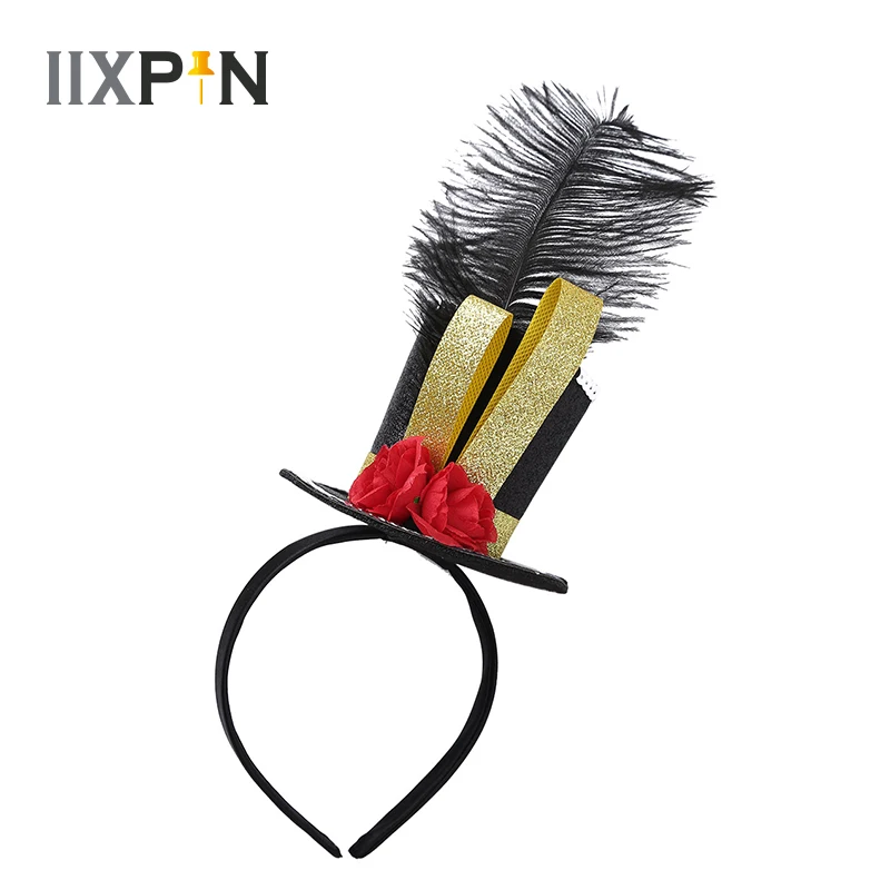 Обруч Детские волосы для девочек, мини-цилиндр в стиле стимпанк, ободок-Вуалетка, с роза из перьев, головной убор, аксессуары для волос