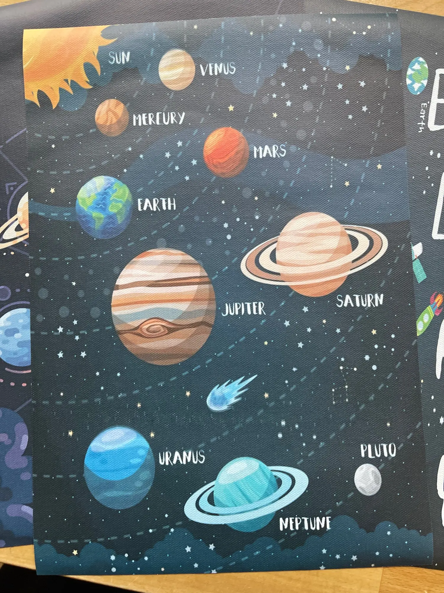 - Well printed on high quality fabric. Had to trim a little to fit an A4 frame, but no problems. Beautiful item, my son loves it!