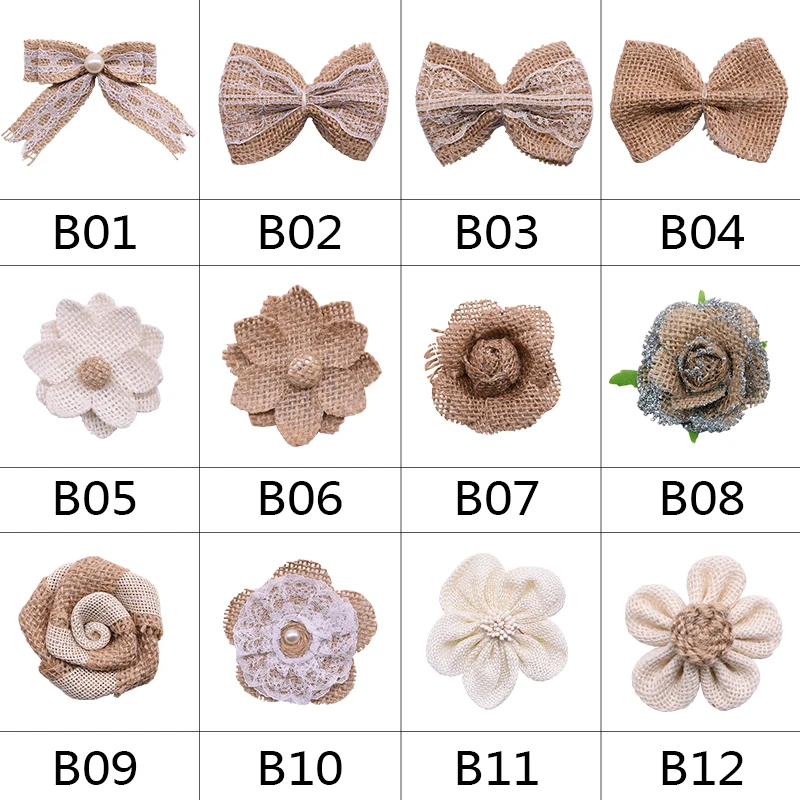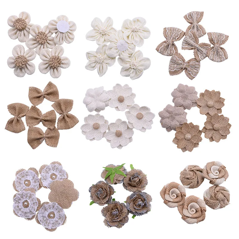 5 шт.лот, ручная работа, винтажный бант Hessian, украшение для свадебной вечеринки, цветы розы