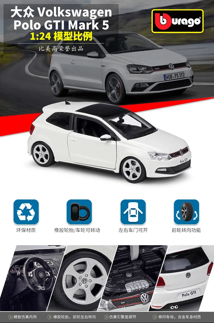 Bburago 1:24 VW Volkswagen Polo GTI Mark 5 Роскошный автомобиль из ...