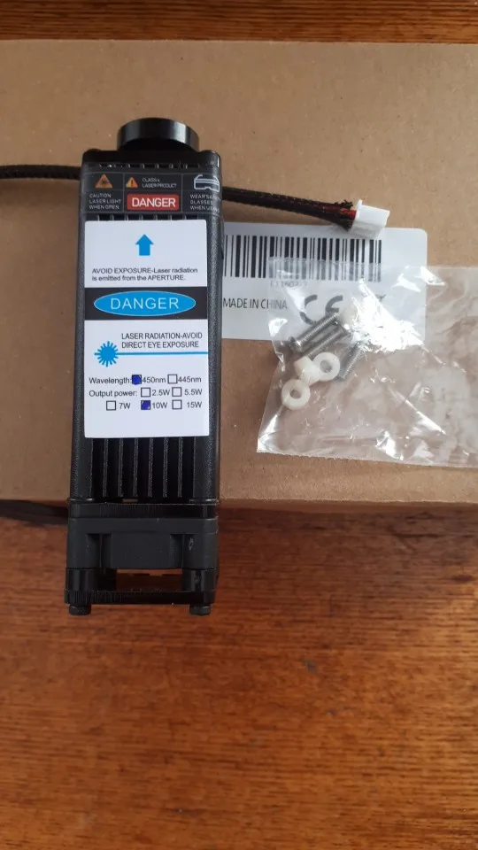 лазер ехал долго, больше месяца, я не знаю по отзывам у всех быстро приехало, я лично устал ждать! 10w фанеру 4 мм прожигает но с трудом за несколько проходов, и то через раз, надо было мощней заказывать, но пока и этого хватит.