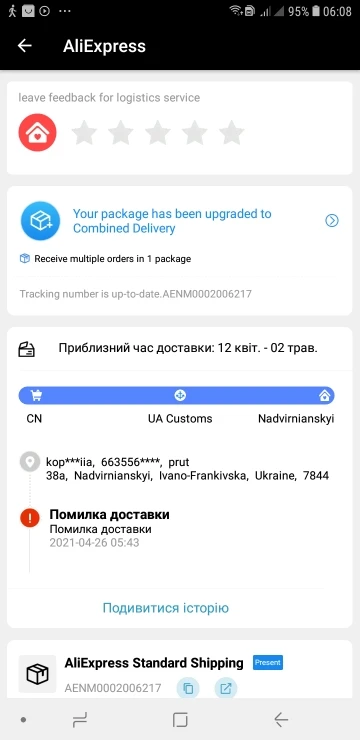Страна: UA Color: Dot film Доставка: Cainiao Super Economy 08.06.2021