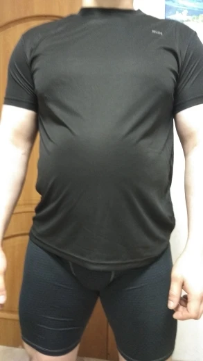Я 194 см, вес 99 кг. У меня есть размер 4 XL, заказанный. Подходит мне. Любой, у кого немного больше живота, не должен заказывать. Очень легкое качество, для бега летом в самый раз.