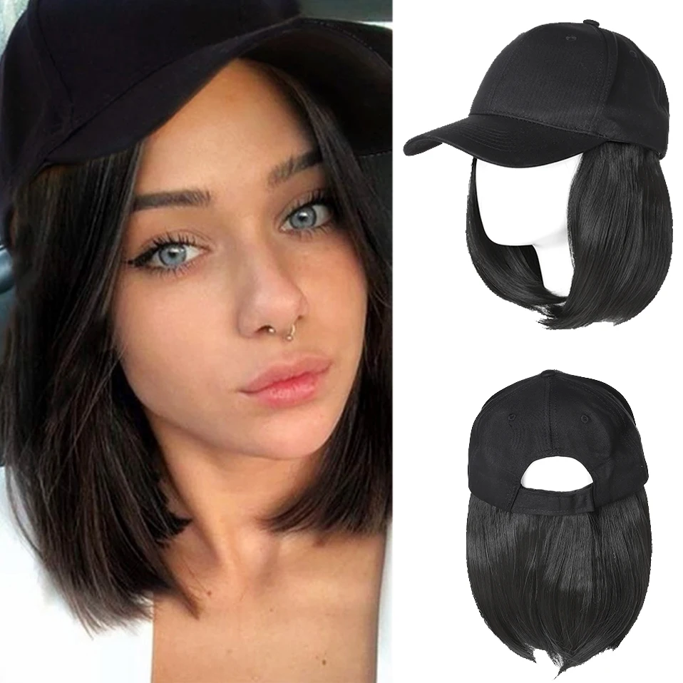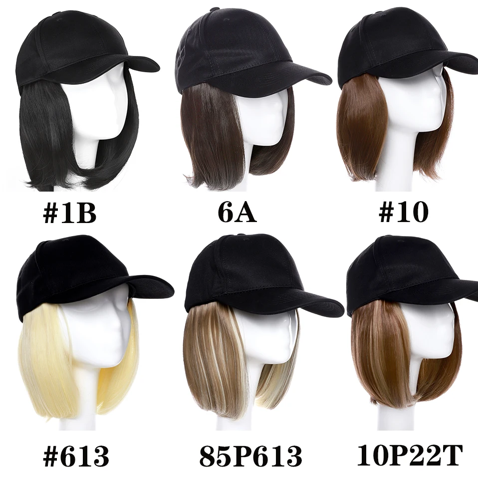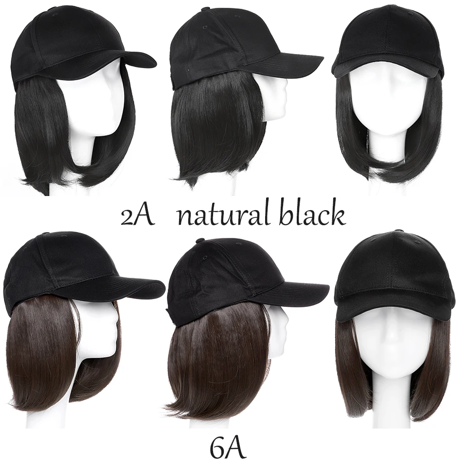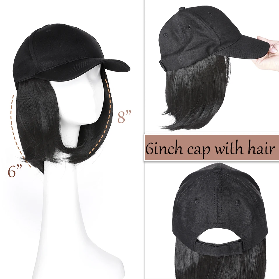 HAIRRO 6 дюймов короткий прямой парик Боб Синтетический натуральный парик черный шляпы парики Кепка с волосами естественно соединяется бейсболка Регулируемая