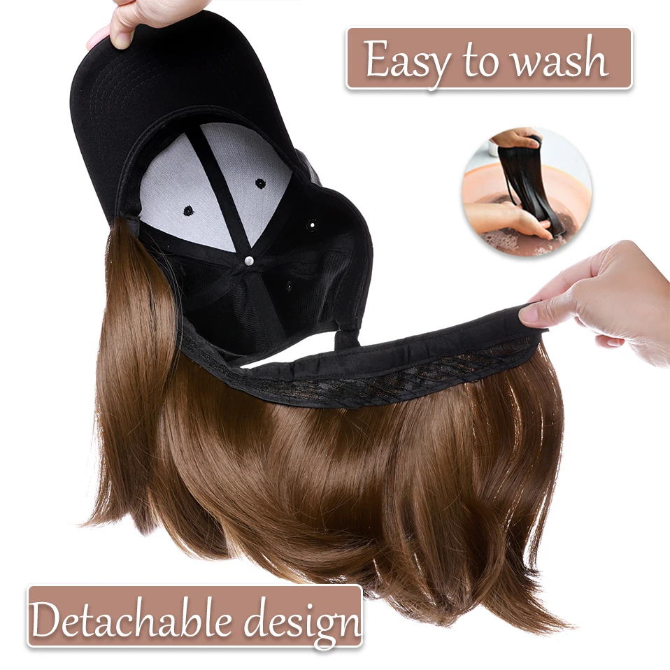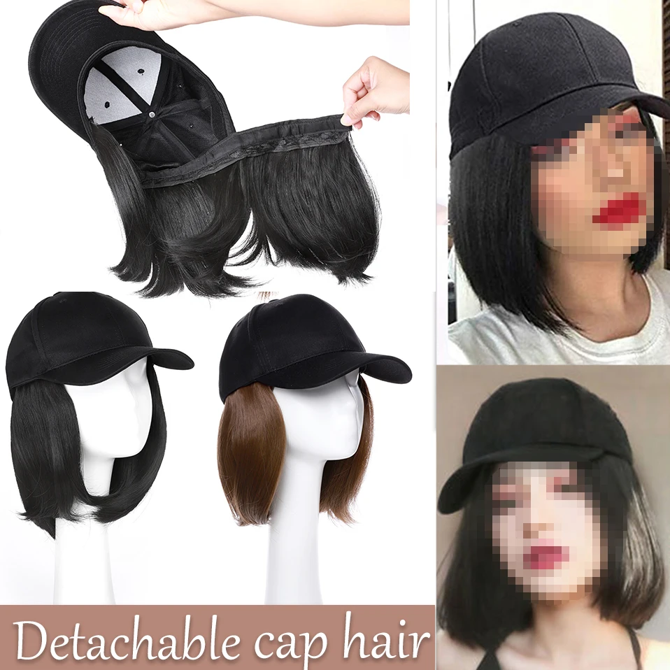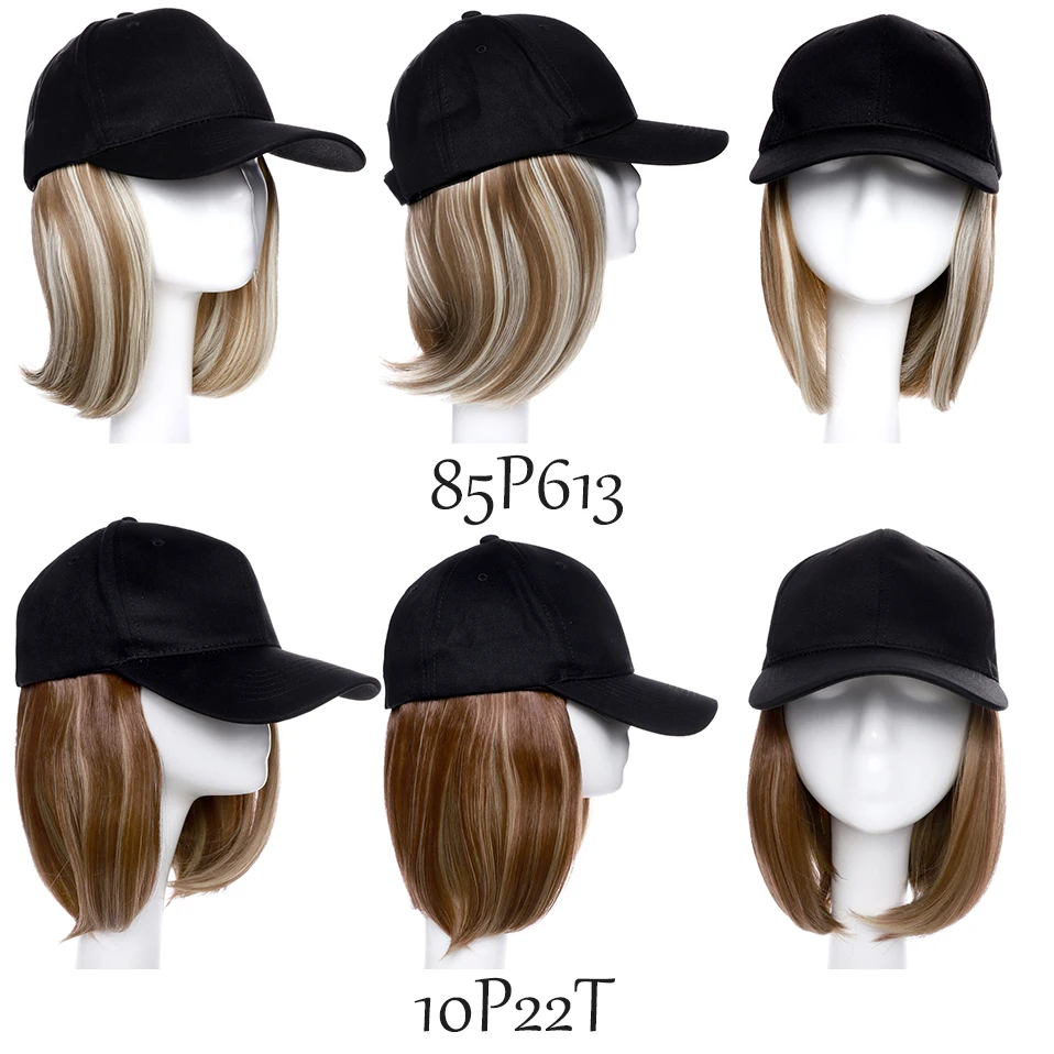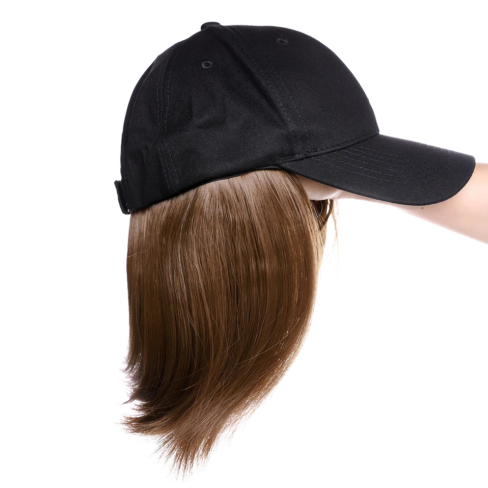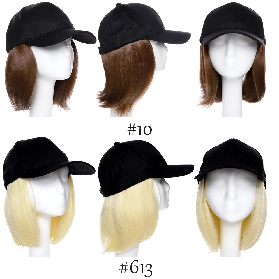HAIRRO 6 дюймов короткий прямой парик Боб Синтетический натуральный парик черный шляпы парики Кепка с волосами естественно соединяется бейсболка Регулируемая